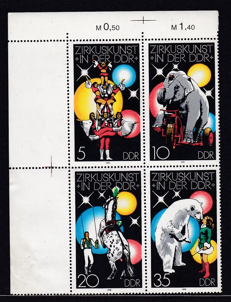 Zirkuskunst in der DDR (I) Eckrandviererblock links oben **,