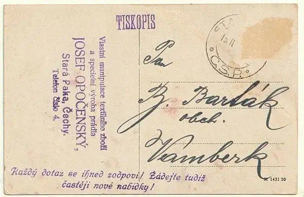 Stara, Parka, Josef Opocensky [ca. 1910]. Farb. Karte. 9 x 14 cm.