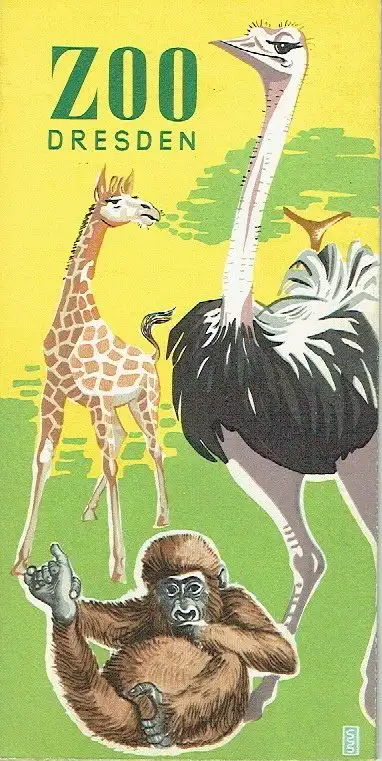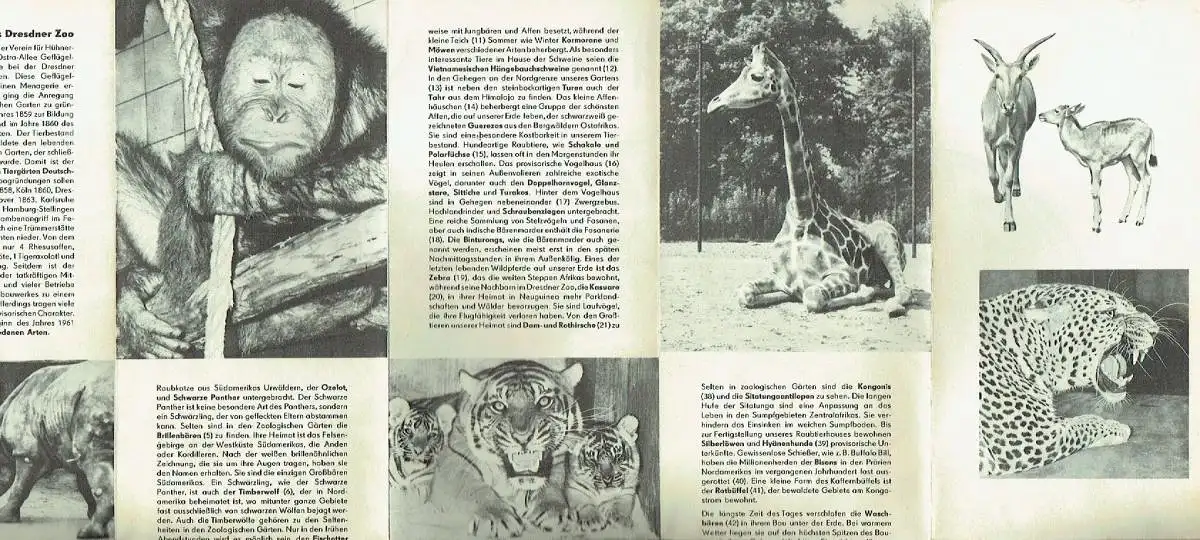 sehr guter Zustand, geringe Gebrauchs- und Alterungsspuren, Prospekt mit Plan Aus der Geschichte des Dresdner Zoos - Rundgang durch den Zoo - großer Plan des Zoo (aufgeklappte Innenseite ca. 58 x 38 cm) - Öffnungszeiten etc, Papier, ca. 9,5 x 19, 24 Seiten mit zahlreichen Bildern und einem Plan