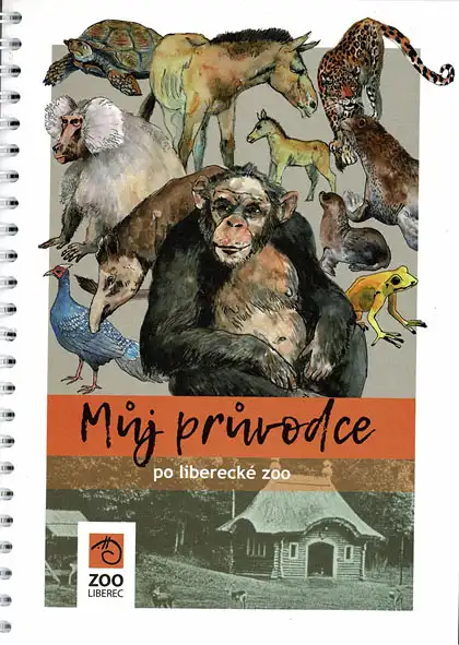 Zooführer (gezeichnete Tiere, Affe im Vordergrund).