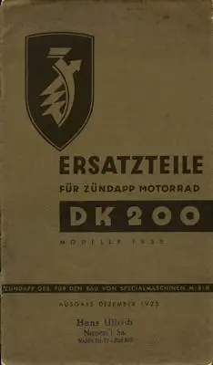 Zündapp DK 200 Ersatzteilliste 1935