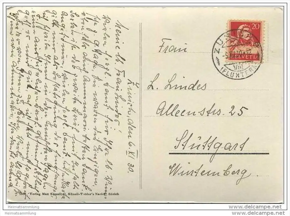 Zürich - Foto-AK Grossformat - Verlag Max Künzli Zürich (G25916) gel. 1930