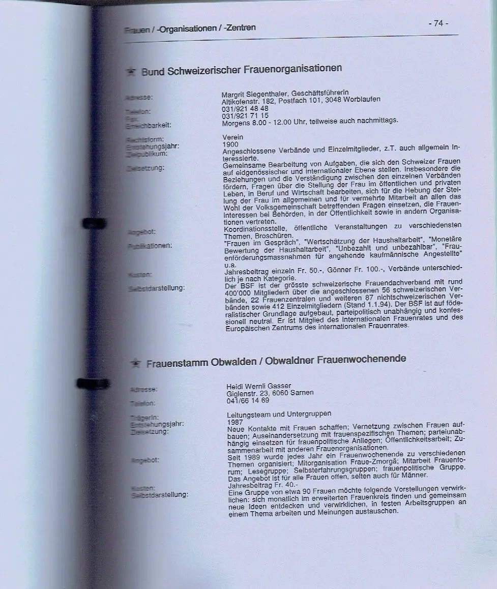 guter Zustand, geringe Gebrauchs- und Alterungsspuren: ob der Einband original ist, kann ich leider nicht sagen, ich konnte kein Vergleichsexemplar finden - Seiten sauber und ordentlich - Buchrücken oben etwas gestaucht/faltig - Seiten teils etwas eselsohrig, Vorwort - Gleichstellung in Arbeit, Bildung, Familie und Öffentlichkeit - Sachgebiete - Gleichstellung - Alter - Anlässe / Symposien - Arbeit / Beruf / Arbeitslosigkeit - Armut / Geld / Budget - Ausländerinnen - Behinderte - Berufsverbände / Gewerkschaften - Bildung / Aus-, Weiterbildung - Dokumentationen / Bibliotheken - Drogen / Sucht - Familie - Allgemein - Alleinerziehende - Scheidung - Kinderbetreuung - Erziehung - Schule - Frauen / -Organisationen / -Zentren - Frauenprojekte - Friedensbewegung - Gesundheit / Krankheit / Körper - Gewalt / Sexuelle Ausbeutung / Sexuelle Belästigung - Hilfe allgemein - Homosexualität - Jugend / Kinder - Kirche / Spiritualität - Kultur - Männer - Medien - Parteien / Politik - Recht - Schwangerschaft / Mutter-, Vaterschaft / Sexualität - Selbsthilfe - Wohnen - Stichwortverzeichnis, kartoniert (Versandkartonage), ca. 21,5 x 30,5, 173 Seiten im Heftstreifen