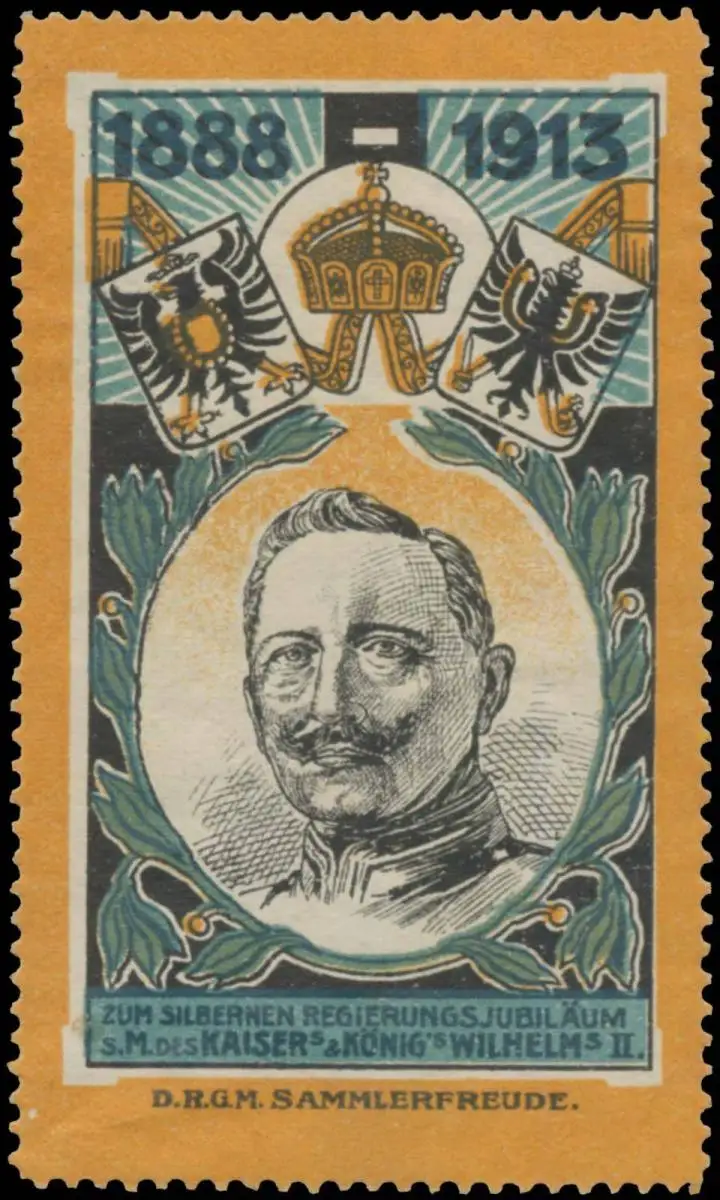 1888-1913, Kaiser Wilhelm II., Sammlerfreude, Größe/Zustand: 7x4 , guter Zustand, Original alte Reklamemarke die seinerzeit für die Werbung benutzt wurde