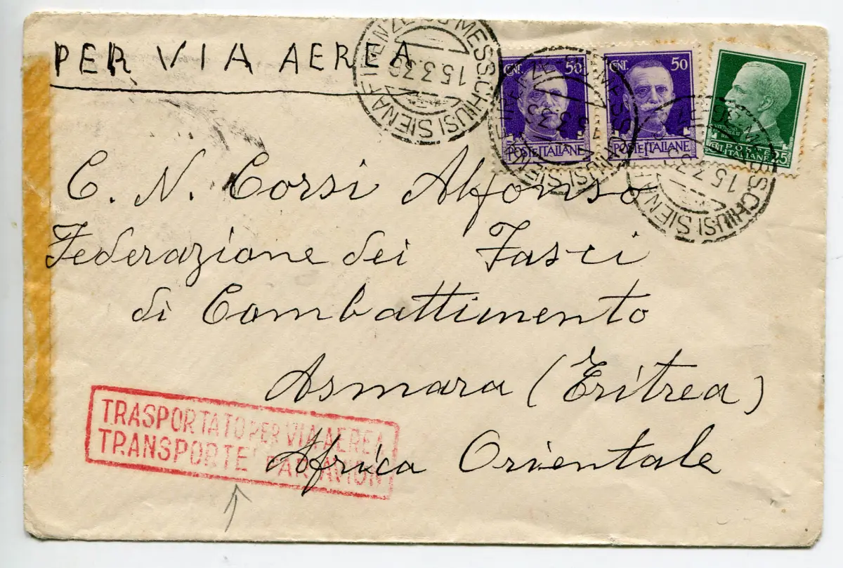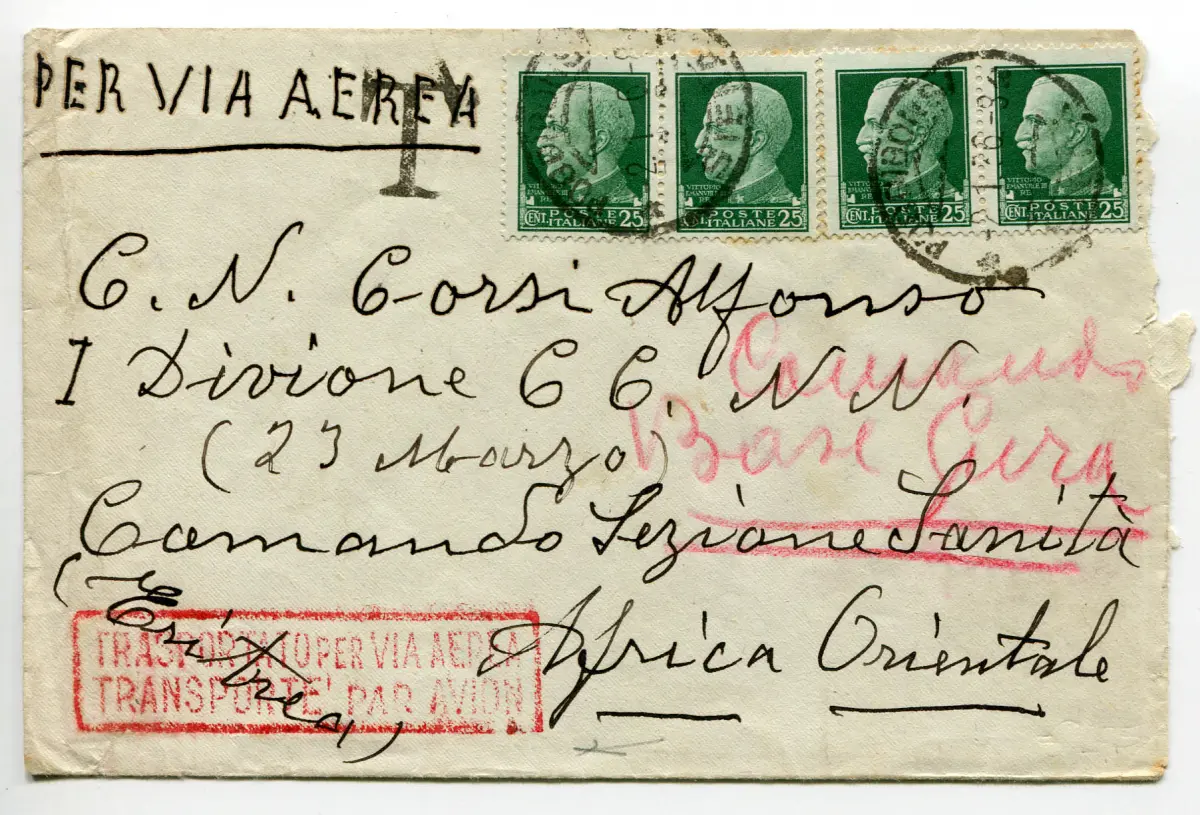 Zwei Aerogramme für Ostafrika Umschlag - Zwei frankierte Aerogramme mit Briefmarken der Kaiserlichen Serie (eines wird bei der Ankunft besteuert), die 1936 nach Ostafrika gereist sind - auf der Vorderseite der roten Annullierungsumschläge im zweisprachigen Ordner Auf dem Luftweg transportiert - Transportiert mit dem Flugzeug - Nr. 1008/OUTLET