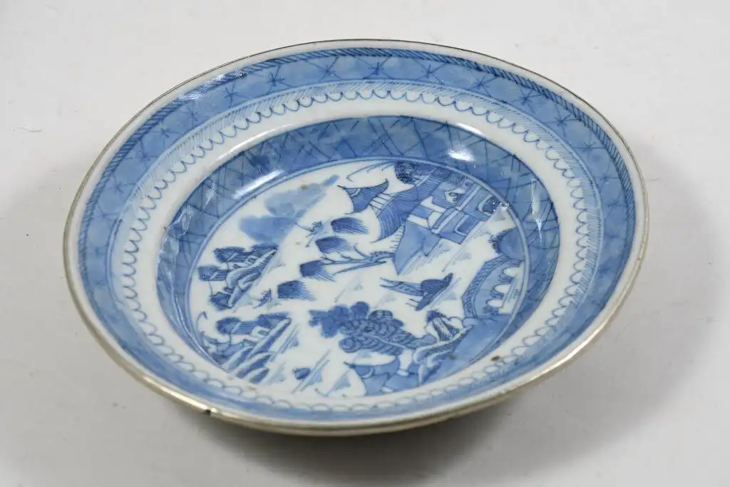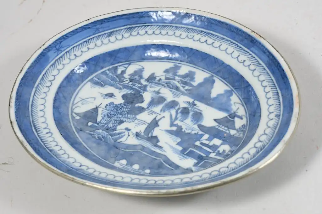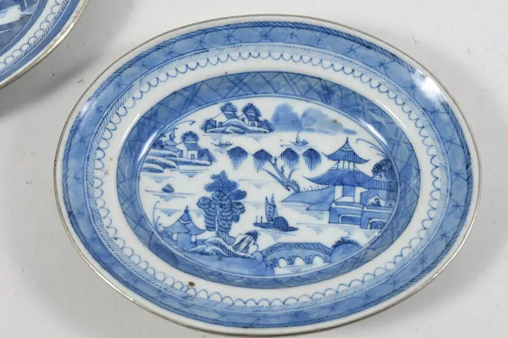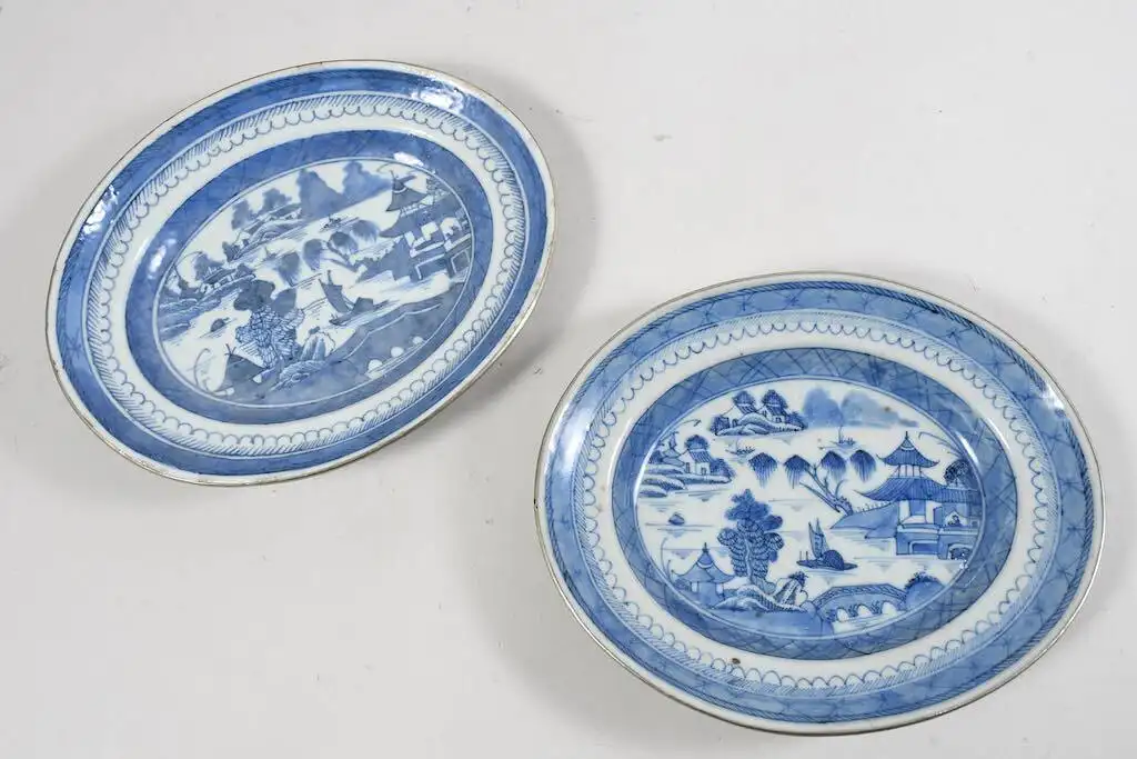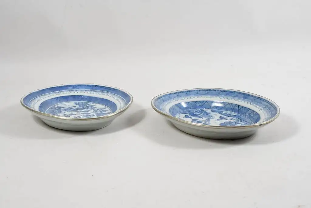 Es handelt sich um chinesische blau-weiße Exportporzellanstücke aus der Zeit erste Hälfte des 19. Jahrhunderts (Jiaqing-Daoguang-Zeit) u