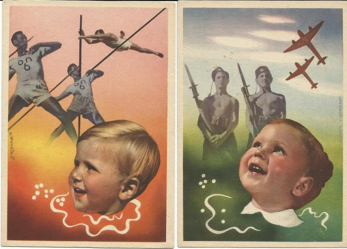 Zwei von E. Mercatali gezeichnete Postkarten Postkarte - Kinder und Sport - Zwei Postkarten von E. Mercatali für die Besucherkommission Mutterschaft zum Thema Sport mit Kind im Vordergrund - neue perfekte Code Nr. 76/4