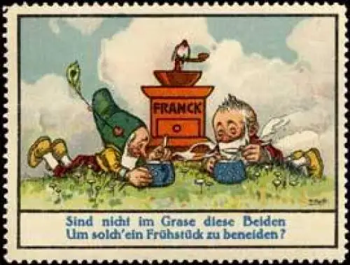 Sind nicht im Grase diese Beiden um solch ein Frühstück zu beneiden?, Größe/Zustand: 4x6 , guter Zustand, Original alte Reklamemarke die seinerzeit für die Werbung benutzt wurde