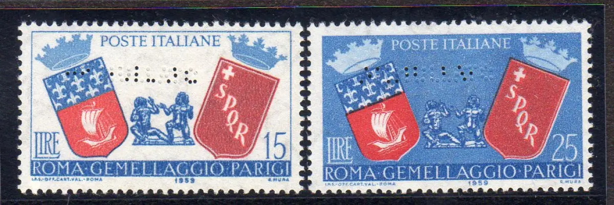 Zwillinge Rom - Paris Bohrserie ABGESAGT Vollgummi MNH - Zwillinge Rom - Paris Nr. 856/857 Zwei-Wert-Serie mit Bohrung ABGEBROCHEN - Ungewöhnlich Cod. 496/15