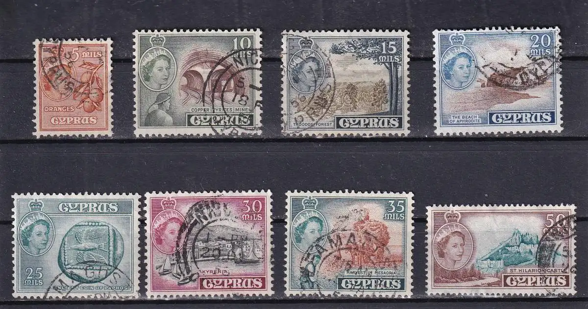 ZYPERN C1955 QEII LOT/ ex Mi 164-172 GESTEMPELT