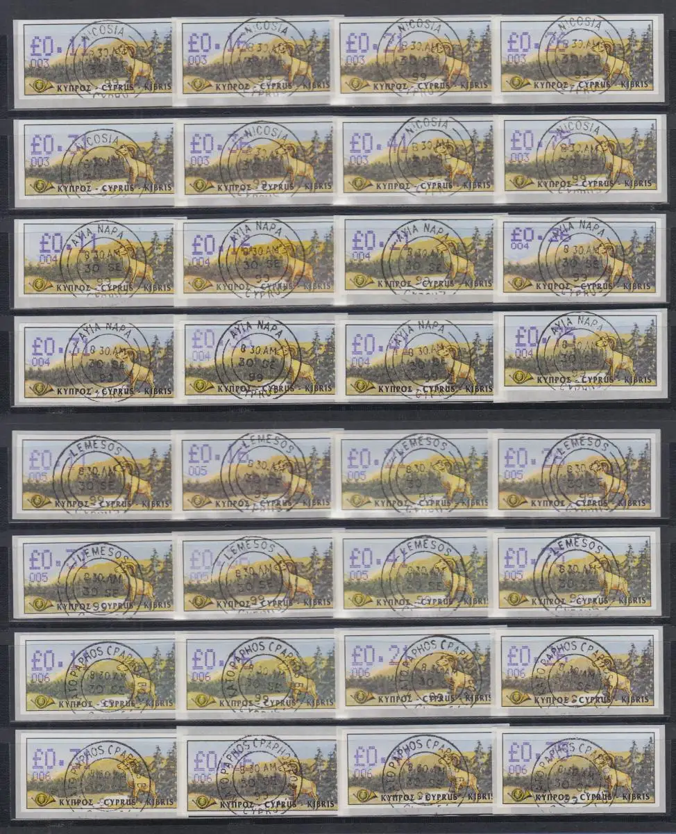 Zypern Amiel-ATM 1999 Mi-Nr. 4 Aut.-Nr. 003-004-005-006 je Tastensatz 8 Werte O