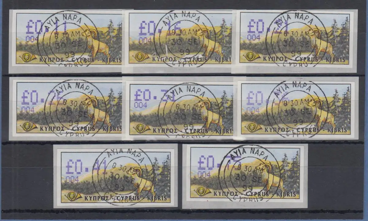 Zypern Amiel-ATM 1999 Mi-Nr. 4 Aut.-Nr. 004 Tastensatz 8 Werte O