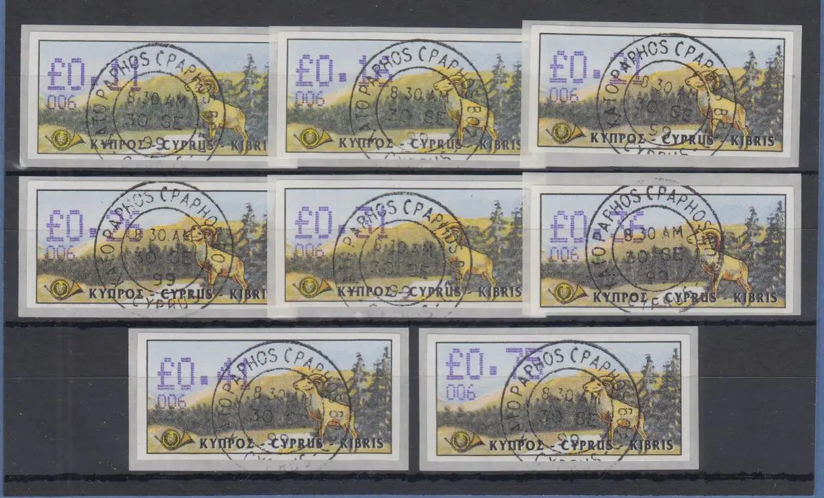 Zypern Amiel-ATM 1999 Mi-Nr. 4 Aut.-Nr. 006 Tastensatz 8 Werte O