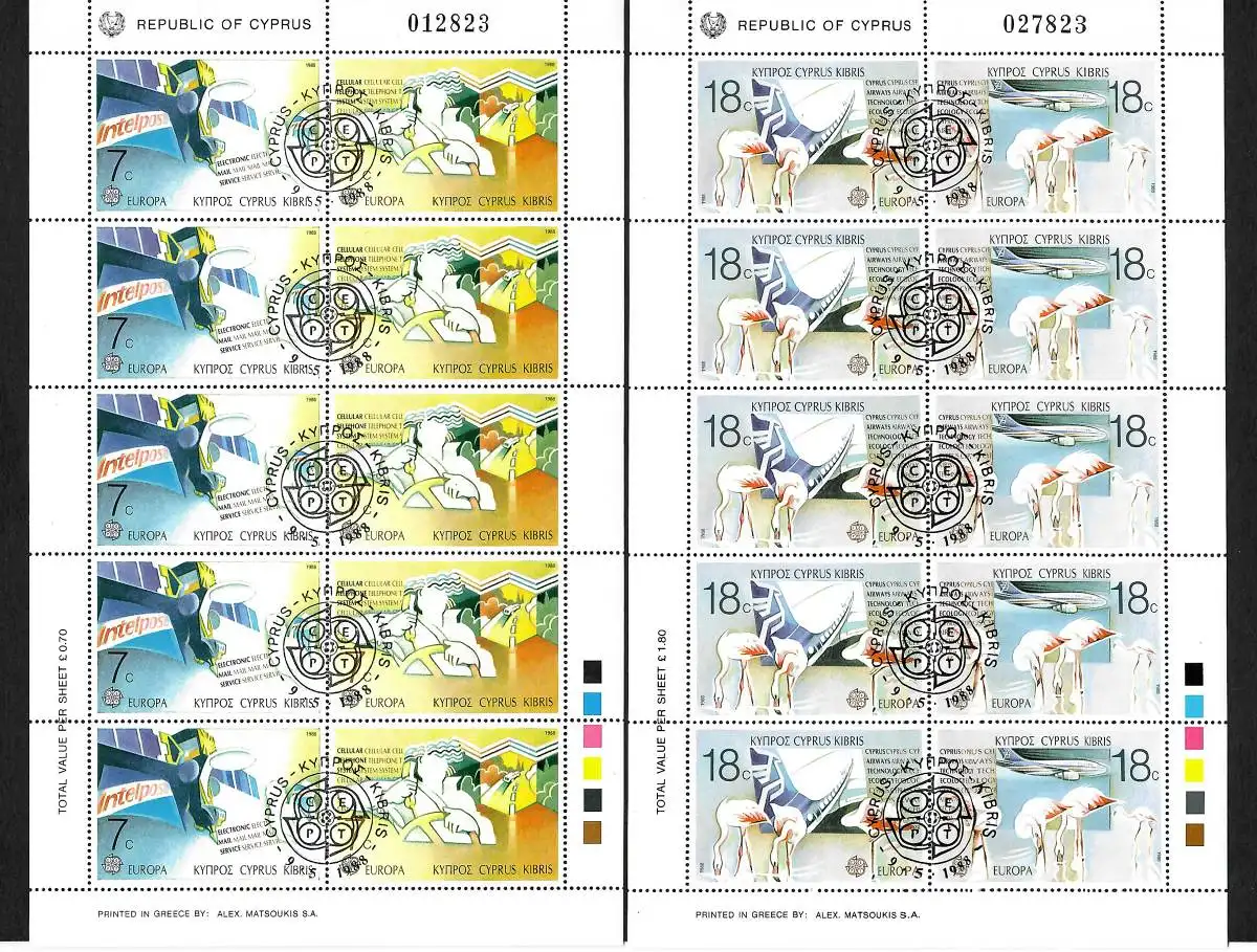 Zypern: Europa Marken 1988, 2x Bogen, gestempelt #695-698