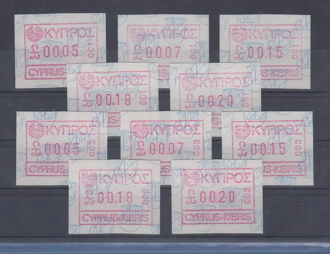 Zypern Frama-ATM 1989 Aut.-Nr. 001 u. 002 von VS je Satz 5 Werte 5-7-15-18-20 **