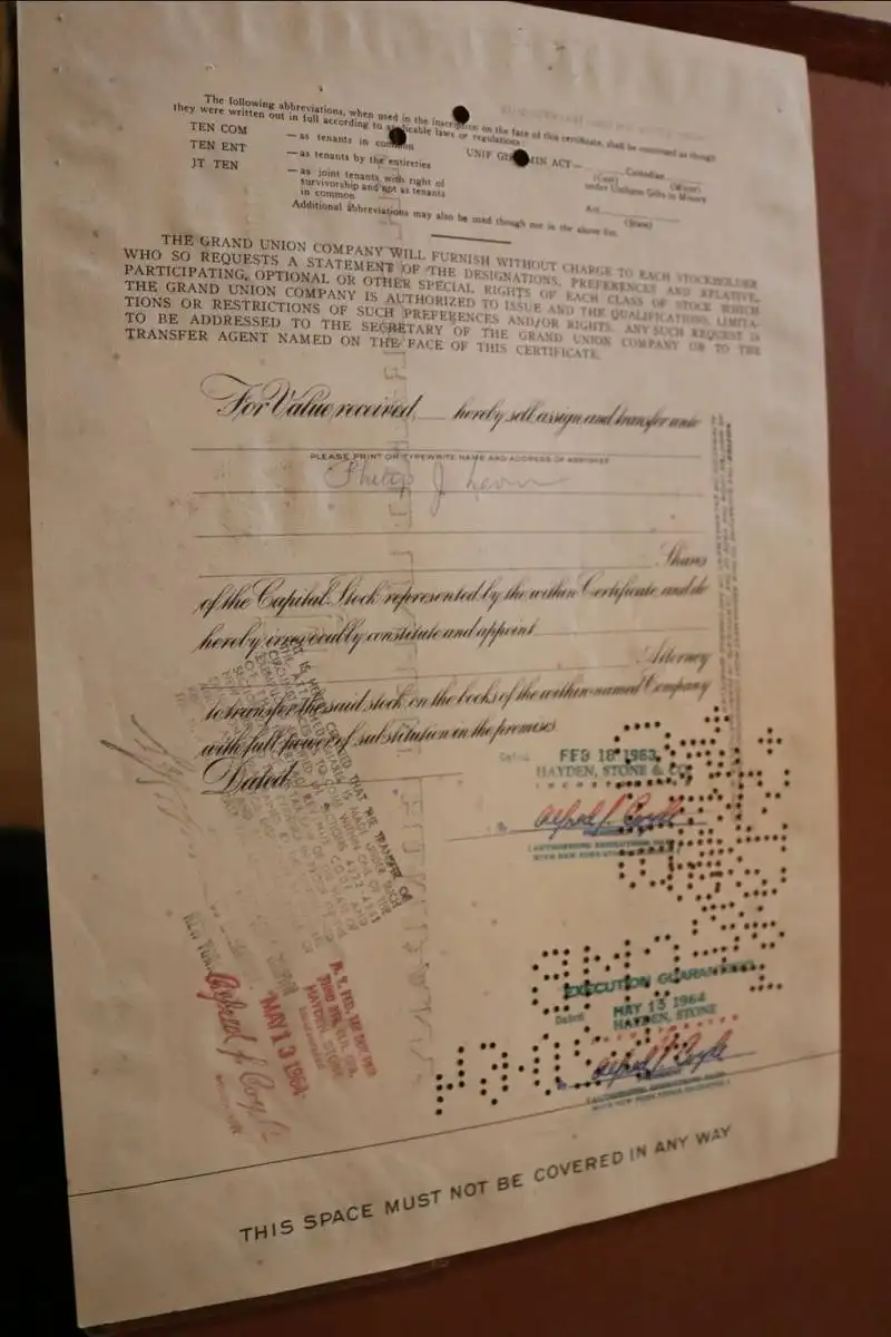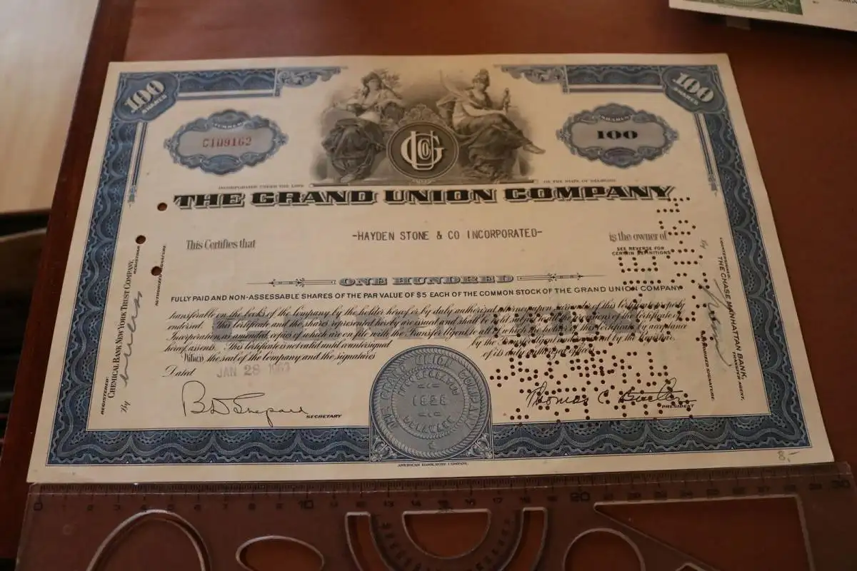Biete hier eine alte Aktie - The Grand Union Company 1963 an