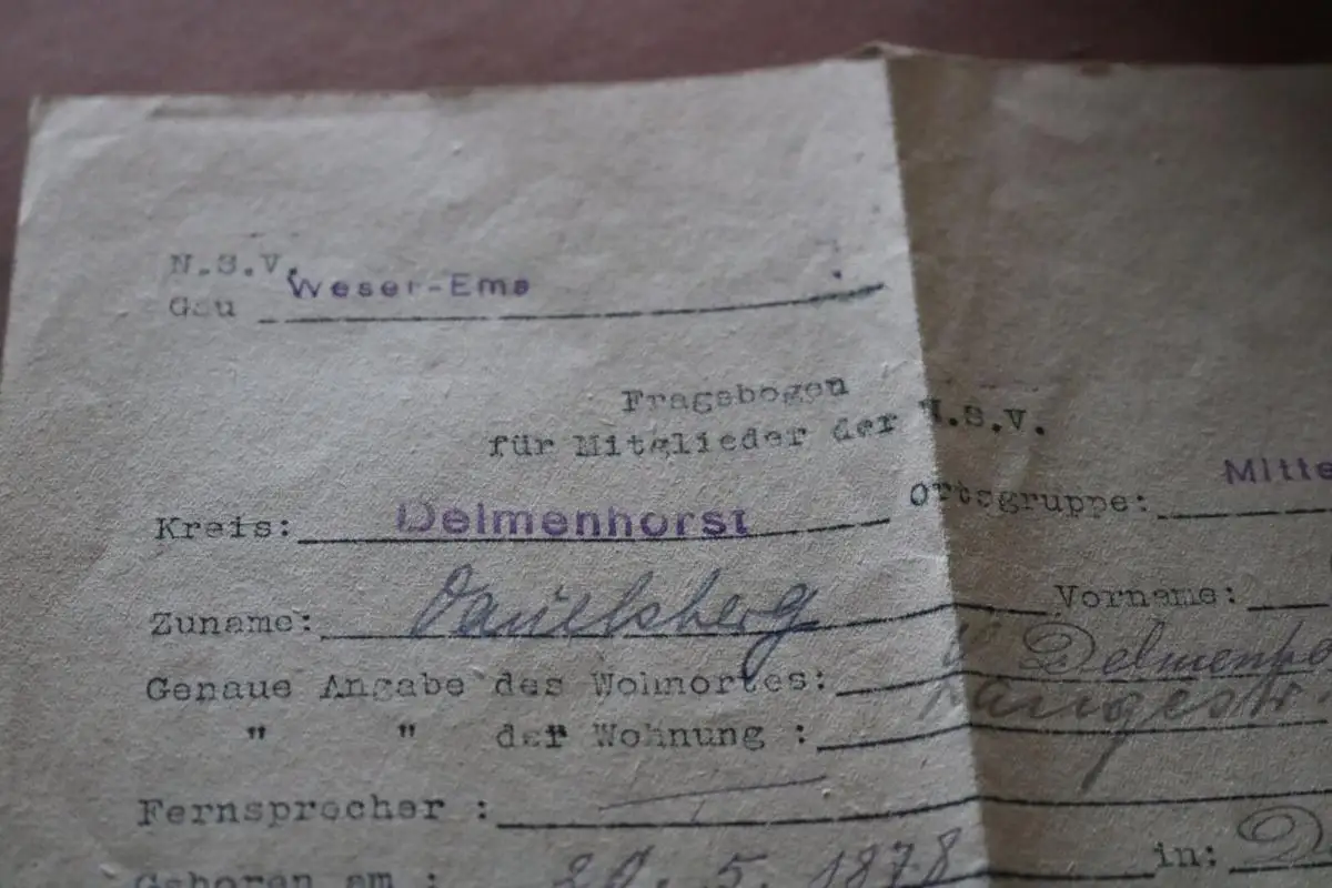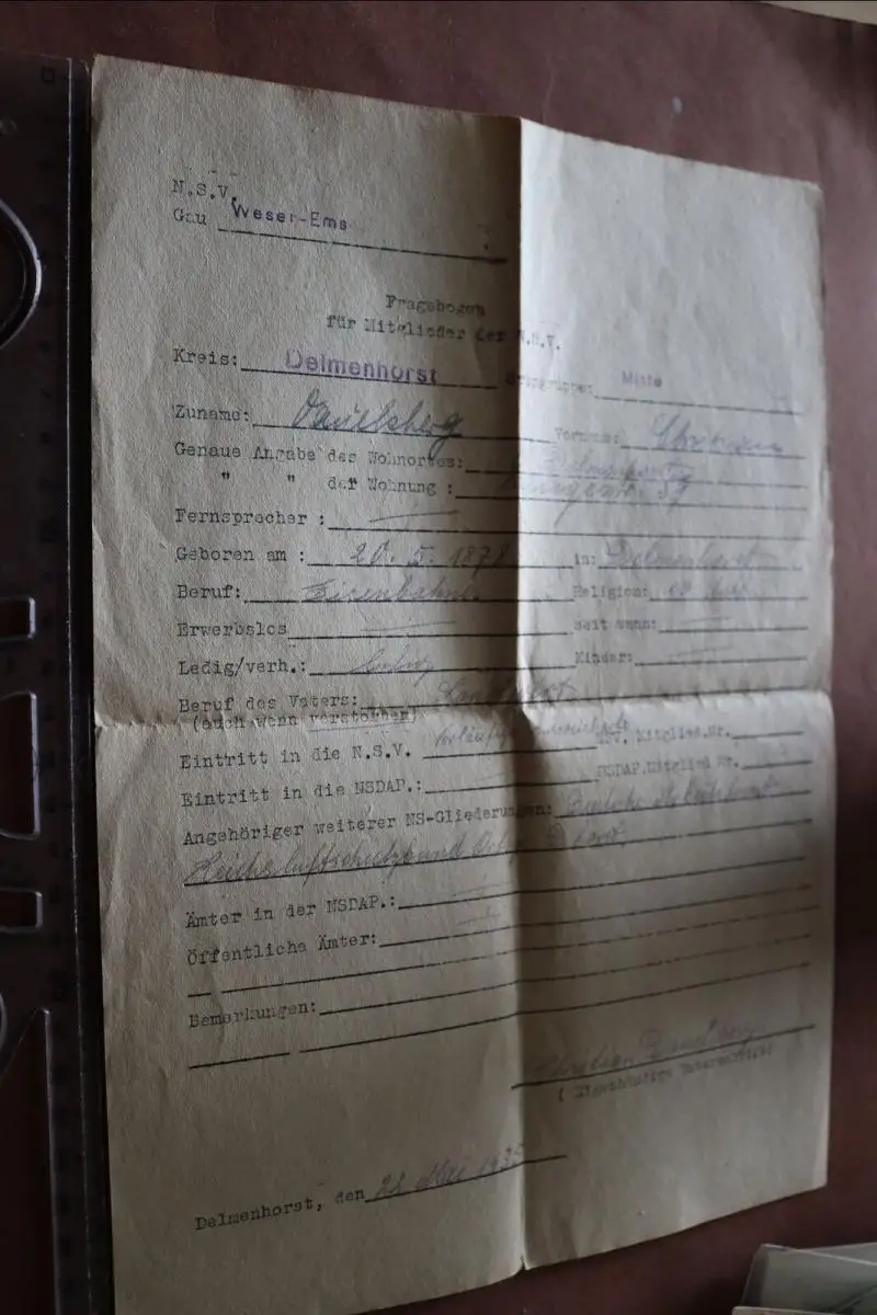 Biete hier ein alter Fragebogen des NSV ?? Gau Weser-Ems Delmenhorst - 1935 an