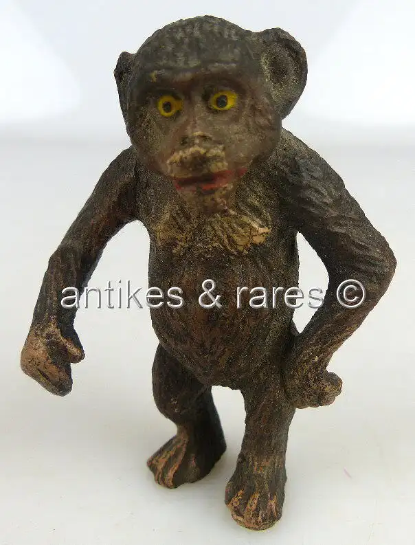 Herzlich Willkommen Gern können Sie auch in meine anderen Auktionen reinschauen. Viel Spaß dabei Sie sehen hier auf ein original altes Elastolin Tier: Affe \nGröße ca.: 3 x 4,5 x 6,5 cm Das Elastolintier ist im bespielten, gebrauchten Zustand und ist nicht geputzt oder gereinigt worden. Bitte sehen Sie sich die Fotos zum Zustand des Artikels/der Artikel an, da diese Bestandteil der Auktion sind (siehe Foto oben).