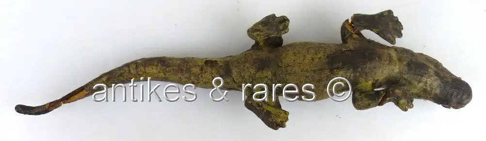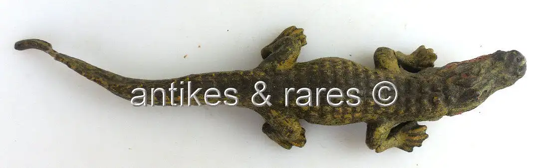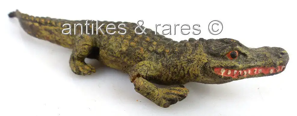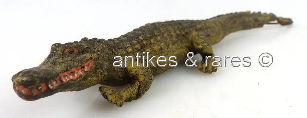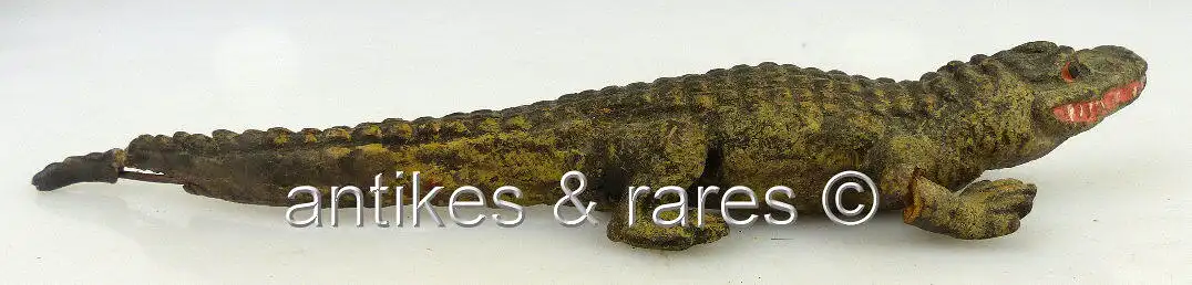 Herzlich Willkommen Gern können Sie auch in meine anderen Auktionen reinschauen. Viel Spaß dabei Sie sehen hier auf ein original altes Elastolin Tier: Krokodil \nGröße ca.: 17 x 3,5 x 2,5 cm Das Elastolintier ist im bespielten, gebrauchten Zustand und ist nicht geputzt oder gereinigt worden. Der Schwanz und die beiden vorderen Pfoten sind gebrochen. Bitte sehen Sie sich die Fotos zum Zustand des Artikels/der Artikel an, da diese Bestandteil der Auktion sind (siehe Foto oben).