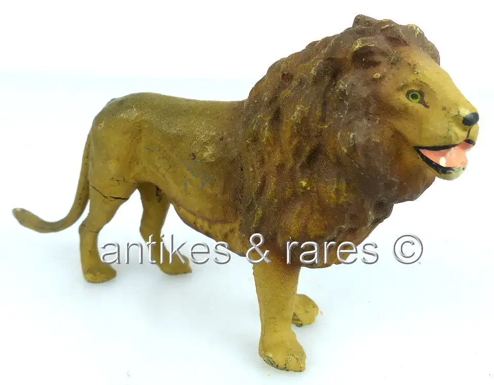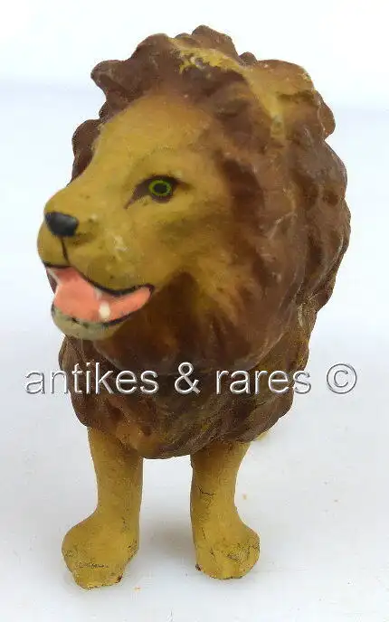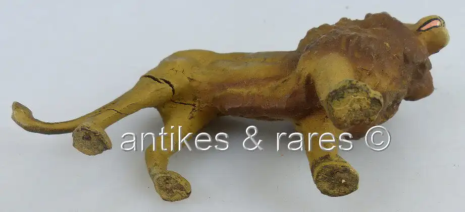 Herzlich Willkommen Gern können Sie auch in meine anderen Auktionen reinschauen. Viel Spaß dabei Sie sehen hier auf ein original altes Elastolin Tier: Löwe \nGröße ca.: 11 x 3 x 6,5 cm Das Elastolintier ist im bespielten, gebrauchten Zustand und ist nicht geputzt oder gereinigt worden. Zwei Beine haben Einrisse und eines ist gebrochen. Bitte sehen Sie sich die Fotos zum Zustand des Artikels/der Artikel an, da diese Bestandteil der Auktion sind (siehe Foto oben).