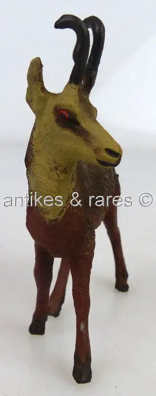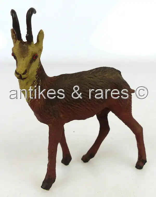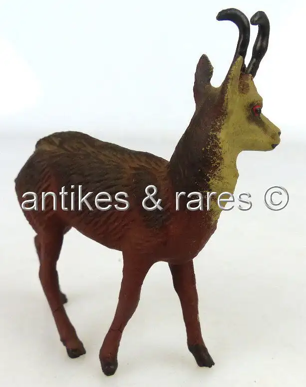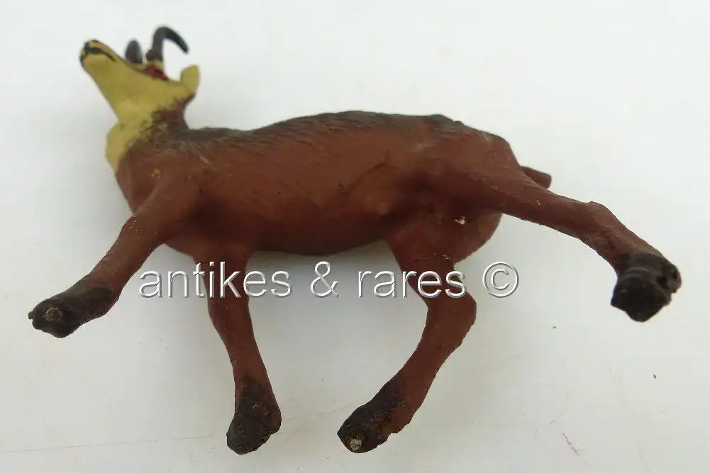 Herzlich Willkommen Gern können Sie auch in meine anderen Auktionen reinschauen. Viel Spaß dabei Sie sehen hier auf ein original altes Elastolin Tier: Springbock \nGröße ca.: 2,5 x 5,5 x 7 cm Das Elastolintier ist im bespielten, gebrauchten Zustand und ist nicht geputzt oder gereinigt worden. Zwei Beine haben minimale Einrisse. Bitte sehen Sie sich die Fotos zum Zustand des Artikels/der Artikel an, da diese Bestandteil der Auktion sind (siehe Foto oben).