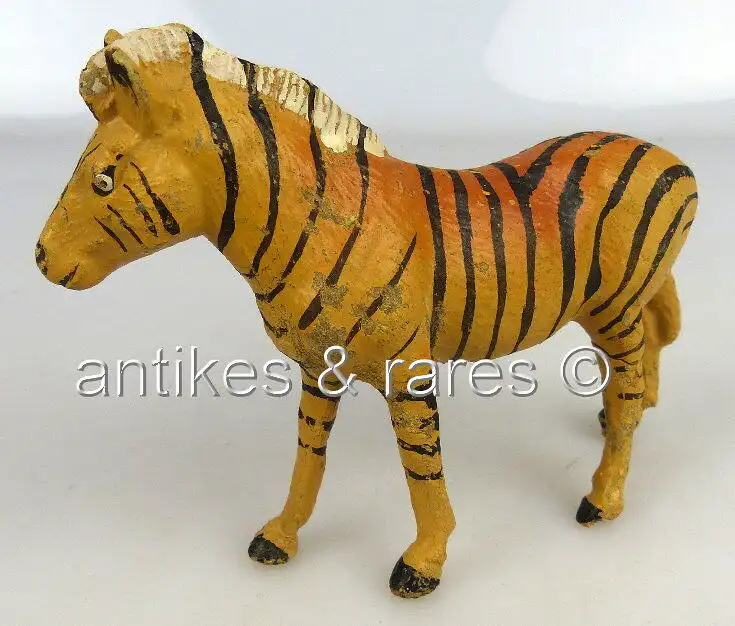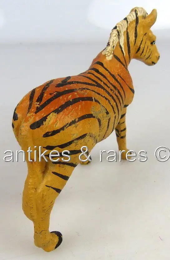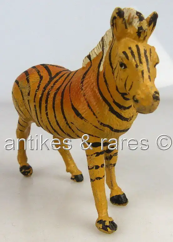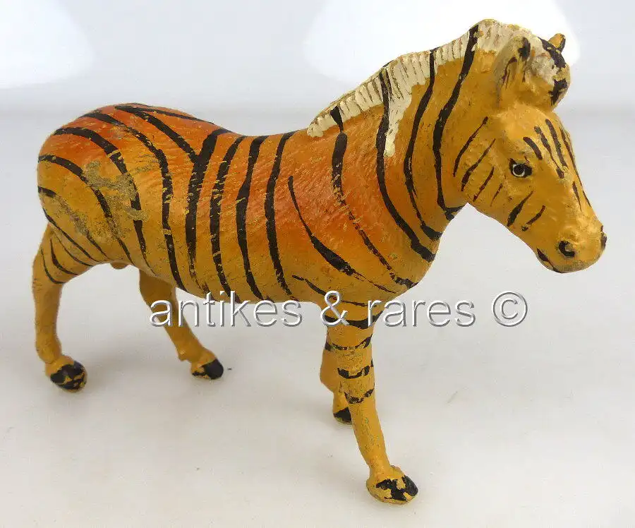 Herzlich Willkommen Gern können Sie auch in meine anderen Auktionen reinschauen. Viel Spaß dabei Sie sehen hier auf ein original altes Elastolin Tier: Zebra \nGröße ca.: 10,5 x 3 x 7 cm Das Elastolintier ist im bespielten, gebrauchten Zustand und ist nicht geputzt oder gereinigt worden. An einem Bein ist ein Riss. Bitte sehen Sie sich die Fotos zum Zustand des Artikels/der Artikel an, da diese Bestandteil der Auktion sind (siehe Foto oben).