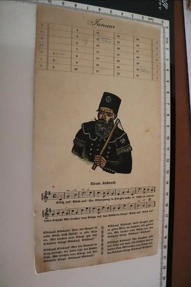 Biete hier ein altes Kalenderblatt Januar - Bergarbeiter in Uniform Lied Neuer Anbruch ? an