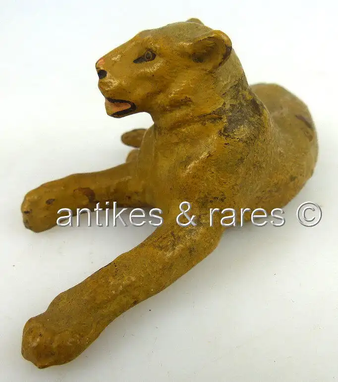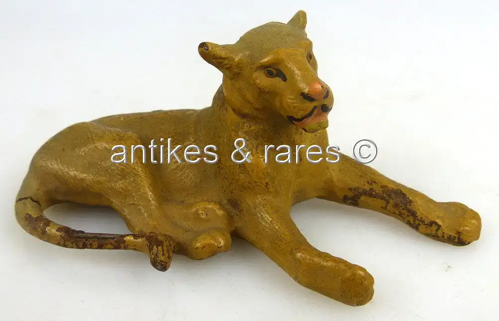 Herzlich Willkommen Gern können Sie auch in meine anderen Auktionen reinschauen. Viel Spaß dabei Sie sehen hier auf ein original altes Lineol Tier: Löwe liegend \nGröße ca.: 4 x 9 x 3 cm Das Lineoltier ist im bespielten, gebrauchten Zustand und ist nicht geputzt oder gereinigt worden. Der Schwanz ist gebrochen. Bitte sehen Sie sich die Fotos zum Zustand des Artikels/der Artikel an, da diese Bestandteil der Auktion sind (siehe Foto oben).