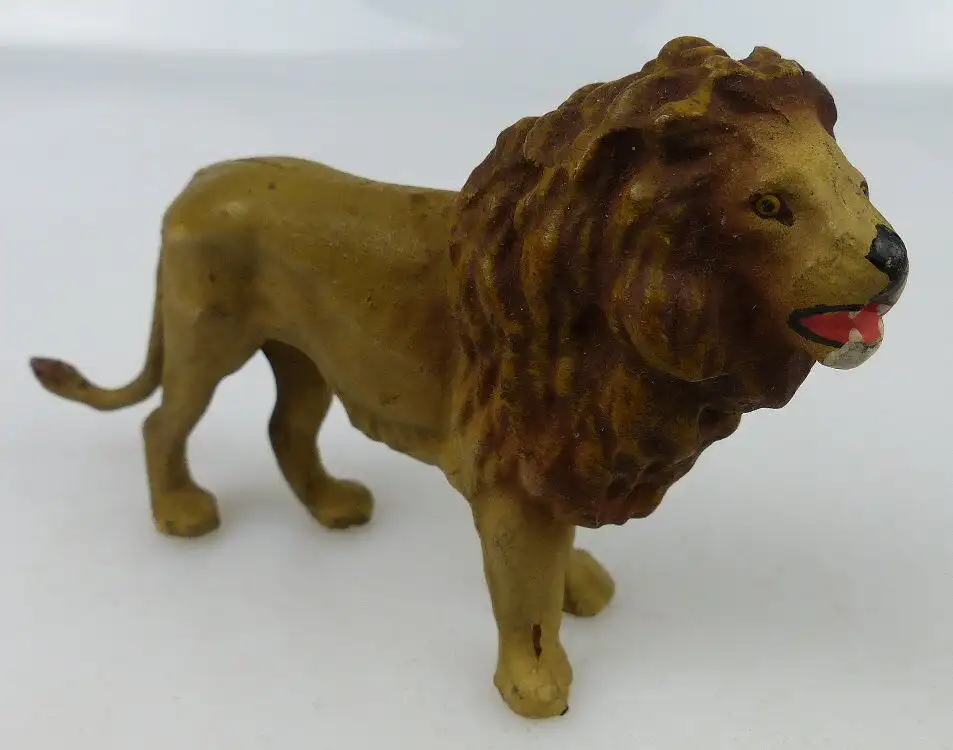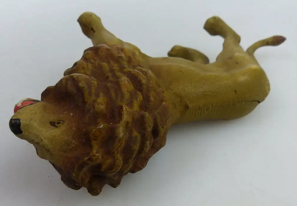 Herzlich Willkommen Gern können Sie auch in meine anderen Auktionen reinschauen. Viel Spaß dabei Sie sehen hier auf ein original altes Lineol Tier: Löwe \nGröße ca.: 11,5 x 3,5 x 7 cm Das Lineoltier ist im bespielten, gebrauchten Zustand und ist nicht geputzt oder gereinigt worden. Der Löwe hat hinten am Schwanzansatz einen Riss. Bitte sehen Sie sich die Fotos zum Zustand des Artikels/der Artikel an, da diese Bestandteil der Auktion sind (siehe Foto oben).