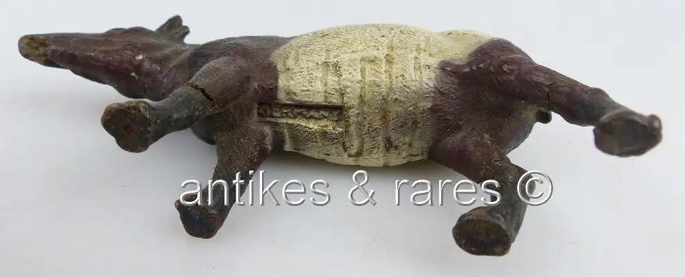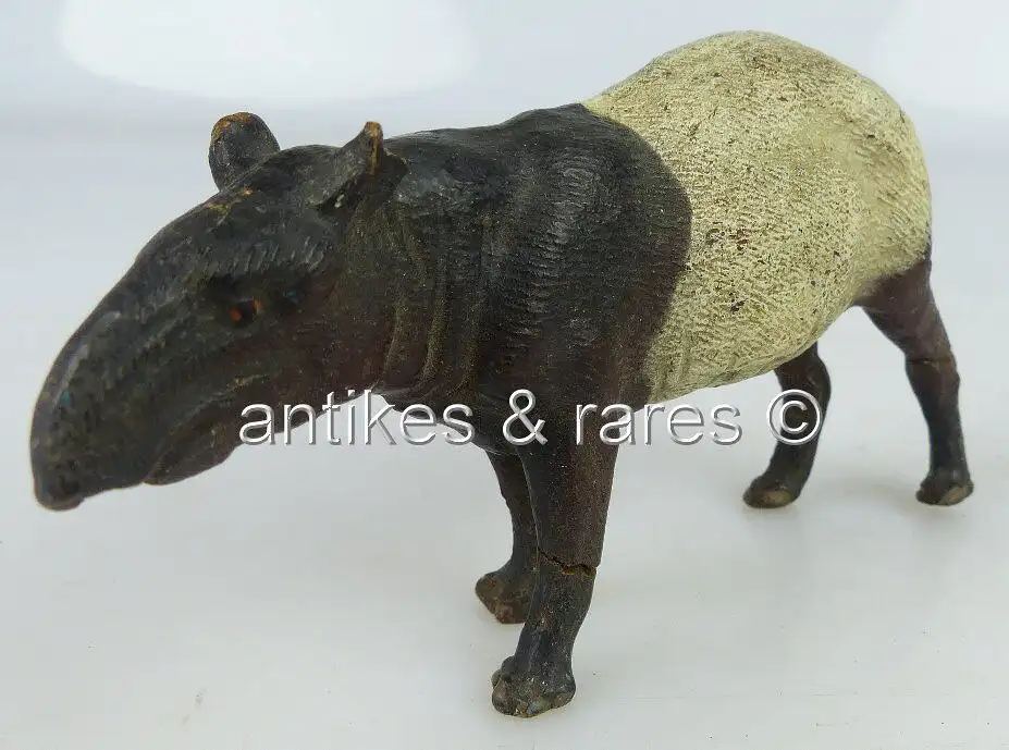 Herzlich Willkommen Gern können Sie auch in meine anderen Auktionen reinschauen. Viel Spaß dabei Sie sehen hier auf ein original altes Lineol Tier: Tapir \nGröße ca.: 9,5 x 2,5 x 5,5 cm Das Lineoltier ist im bespielten, gebrauchten Zustand und ist nicht geputzt oder gereinigt worden. Drei Beine haben größere Einrisse und ein Stück vom Schnabel ist abgebrochen. Bitte sehen Sie sich die Fotos zum Zustand des Artikels/der Artikel an, da diese Bestandteil der Auktion sind (siehe Foto oben)