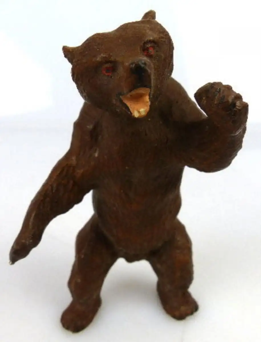 Das Lineoltier is im bespielten, gebrauchten Zustand und ist nicht geputzt oder gereinigt worden. Auch sind einige Farbabplatzer. Der Bär ist in einer sehr schönen Erhaltung und hat keine Risse.
