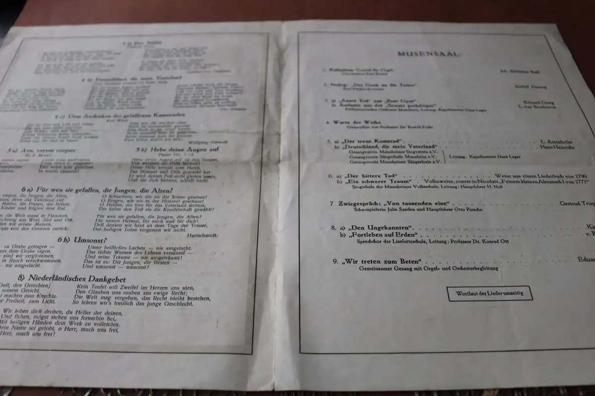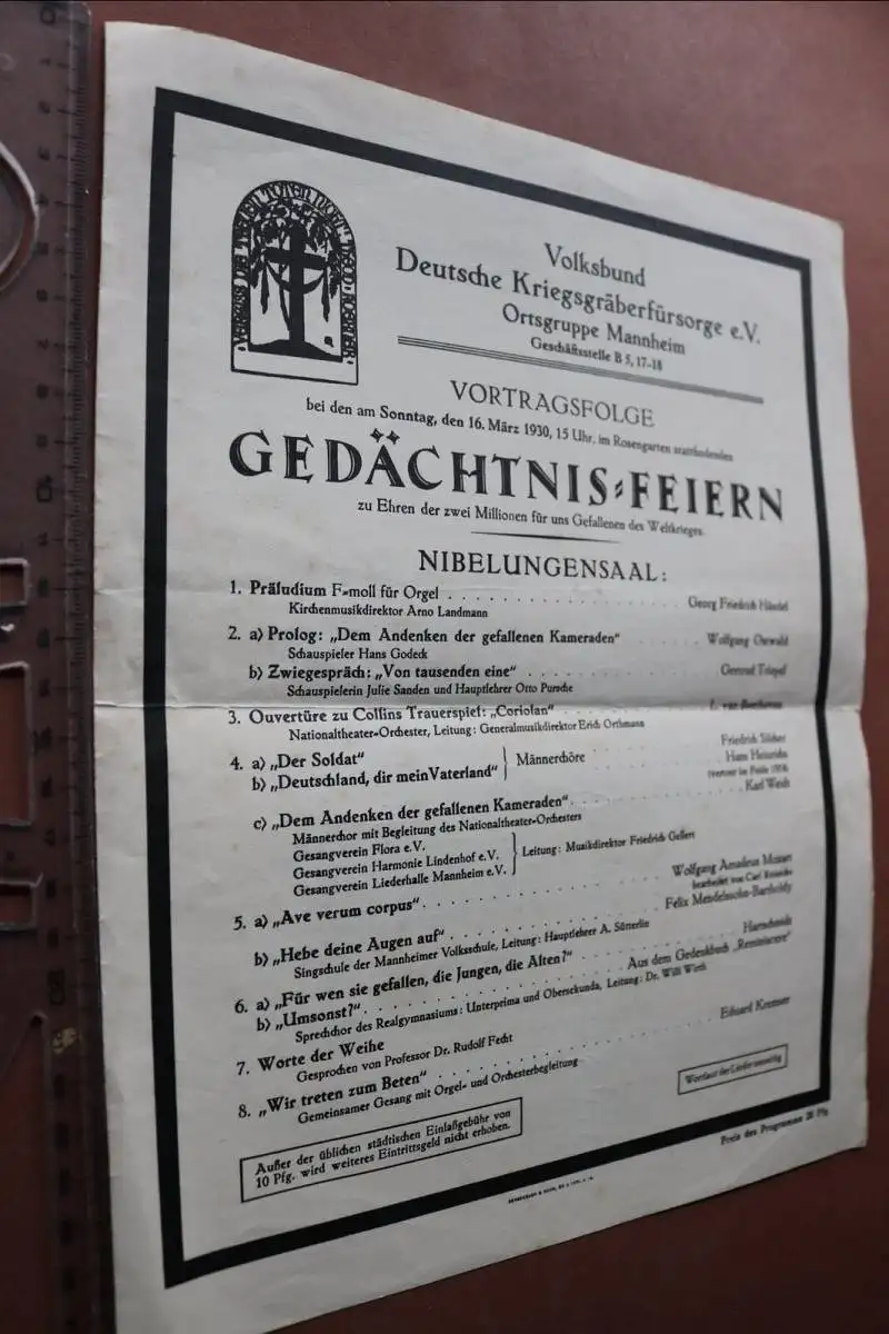 Biete hier ein altes Programmblatt - Gedächtnisfeier der Gefallenen Mannheim 1930 an