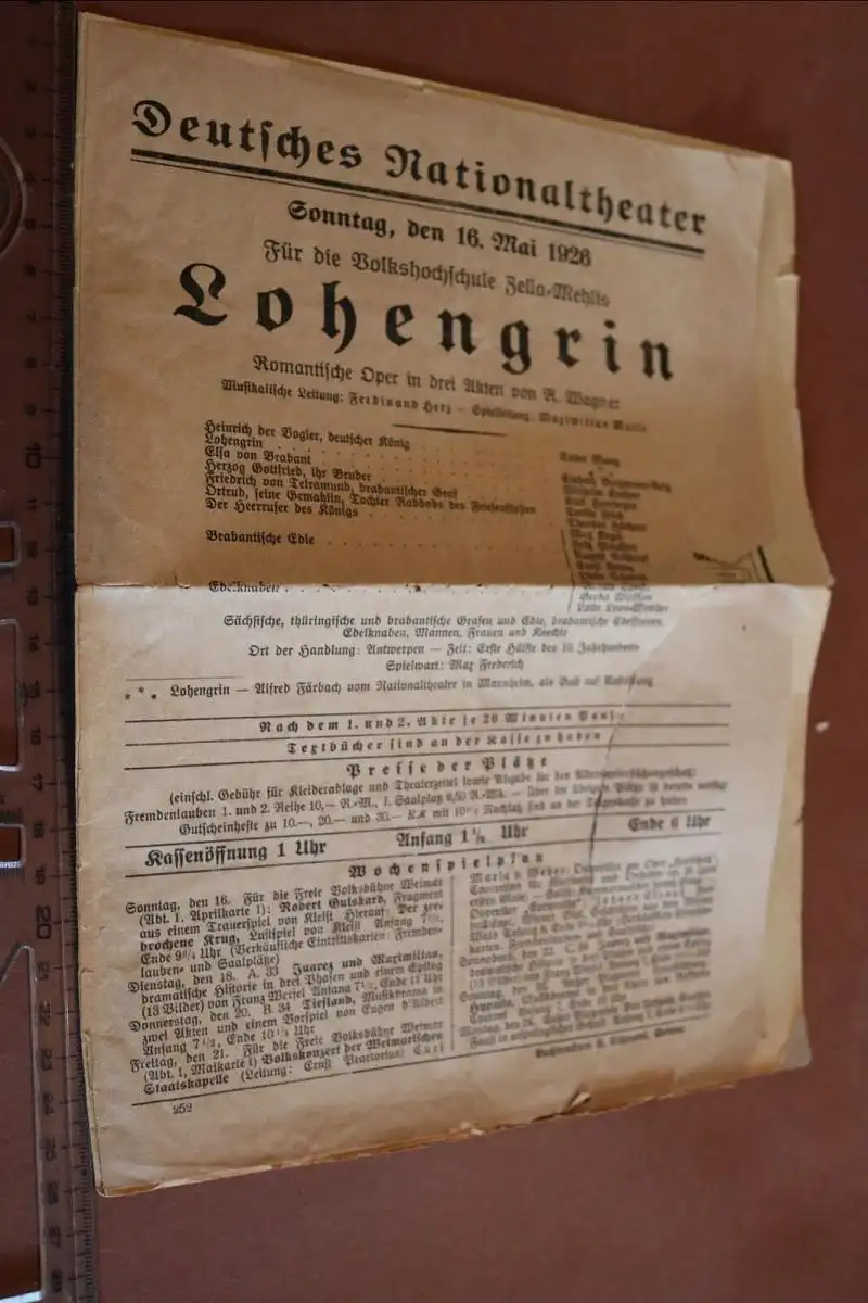 Biete hier ein altes Programmblatt deutsches Nationaltheater Weimar mit Werbung 1926 an