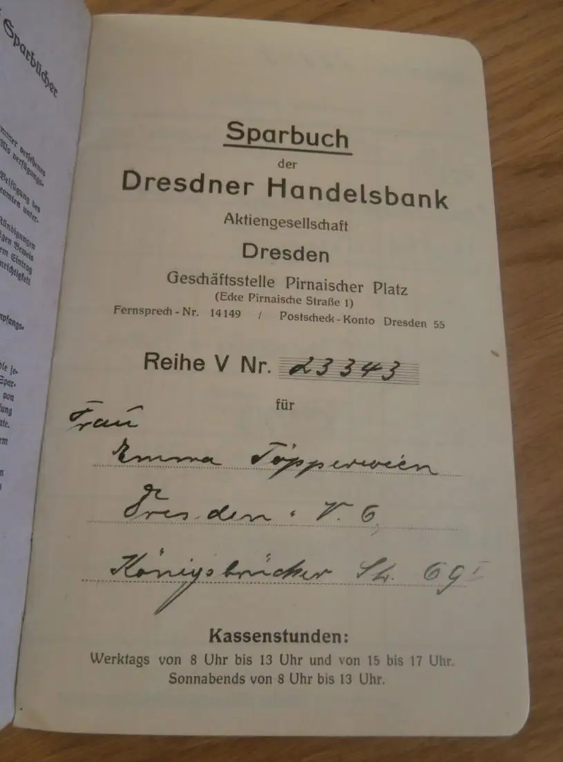 altes Sparbuch Dresden , 1941 - 1944 , Emma Töpperwein , Sparkasse , Bank !!!