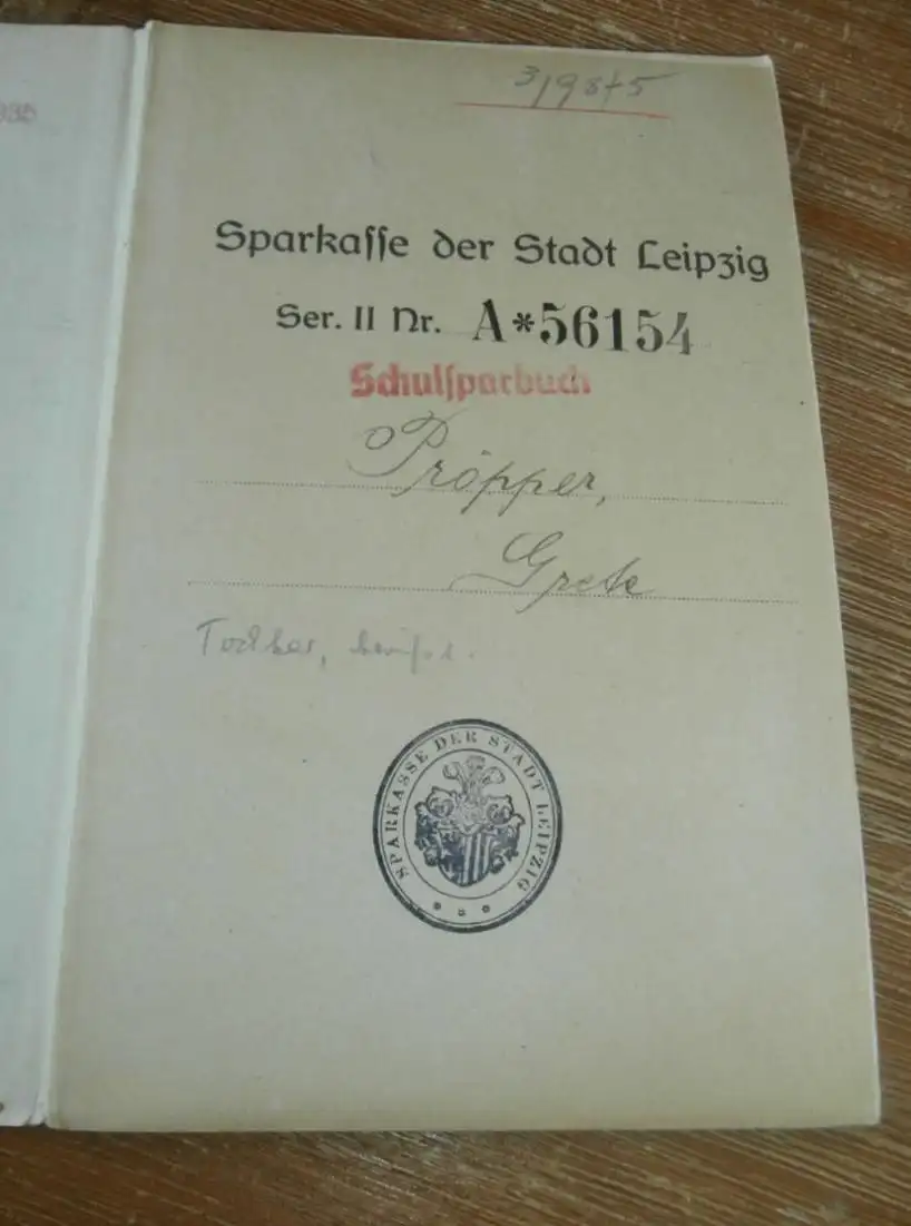 altes Sparbuch Leipzig , 1926 - 1945 , Grete Pröpper in Leipzig , Sparkasse , Bank !!AZ7-p