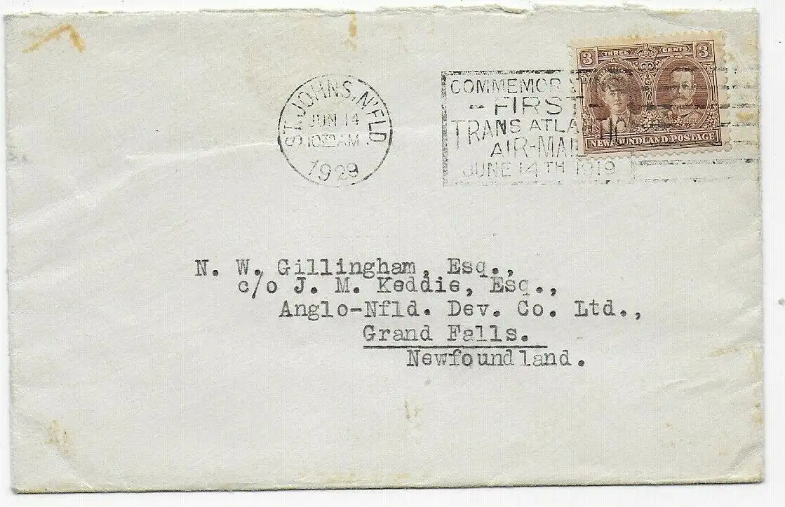 cover St. Johns N'FLD to Grand Falls, 1929