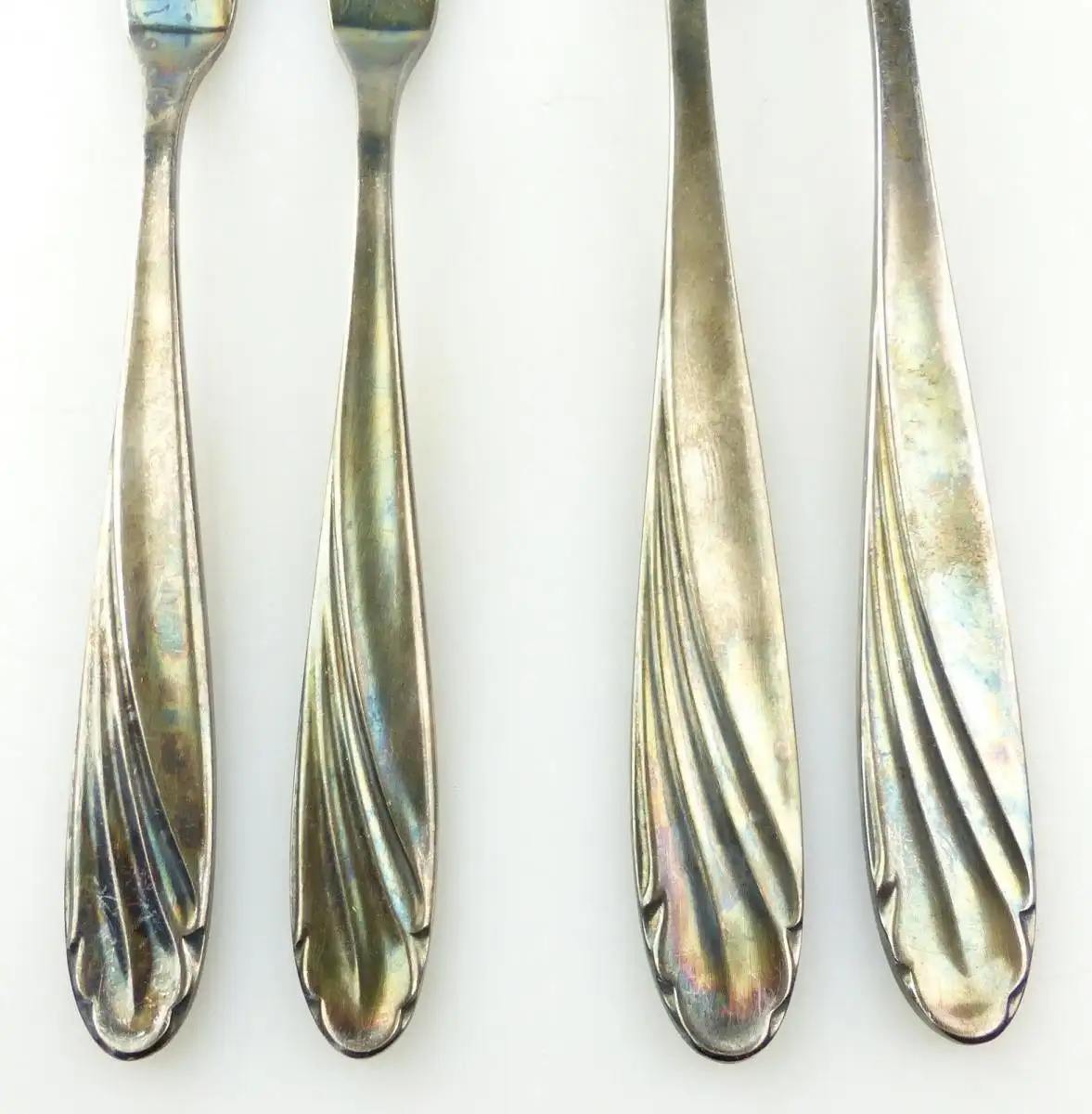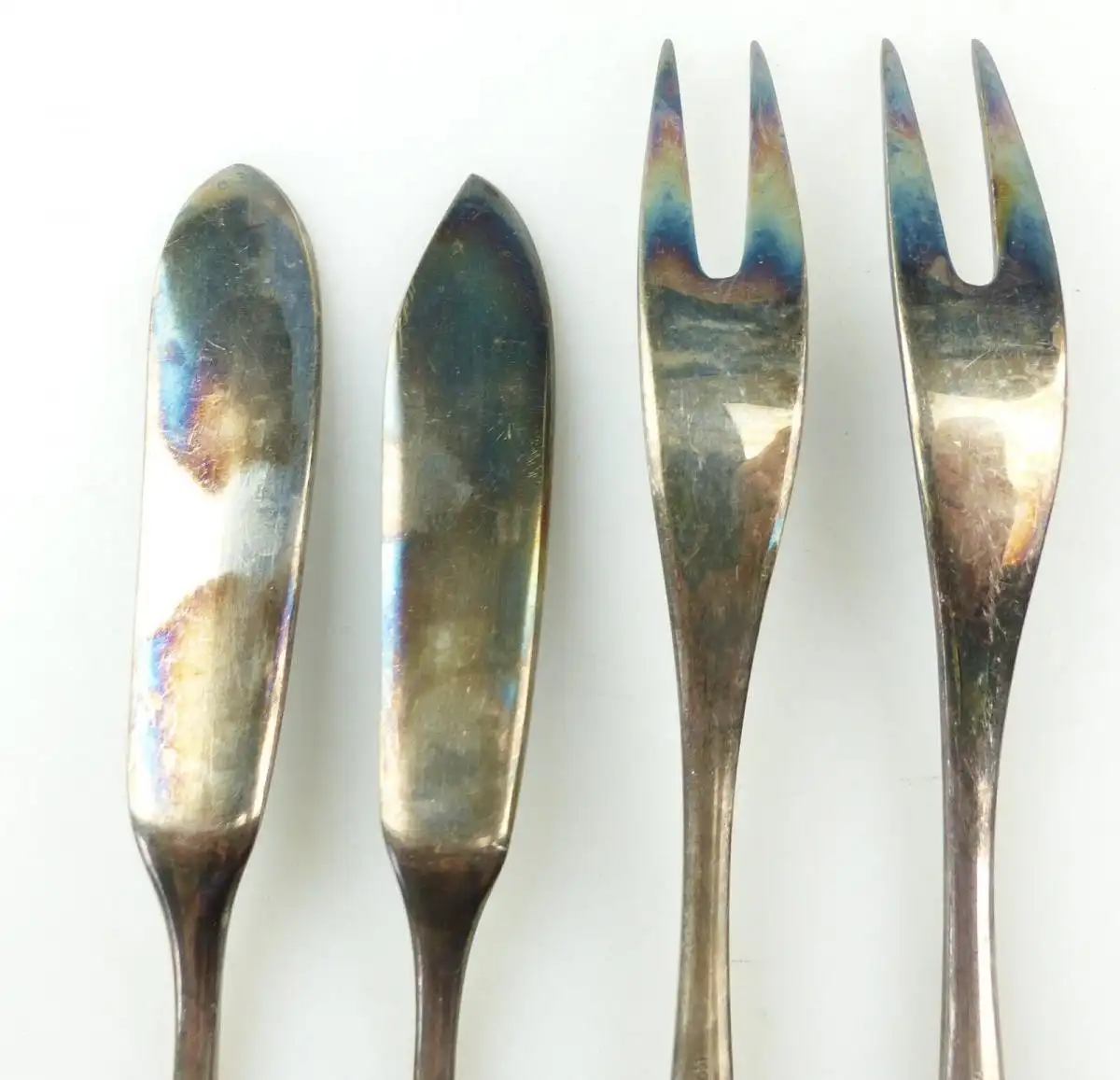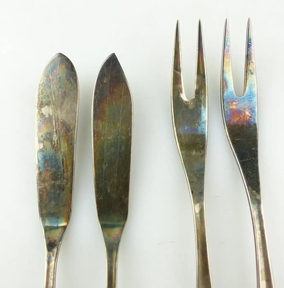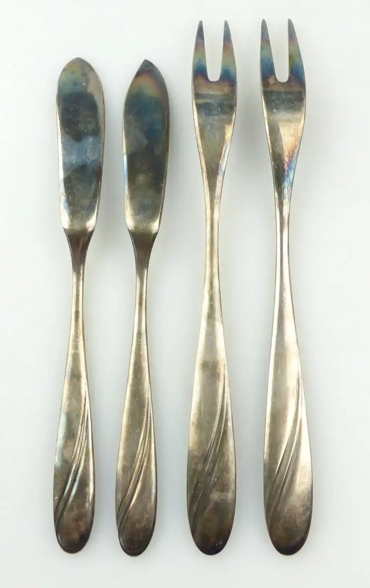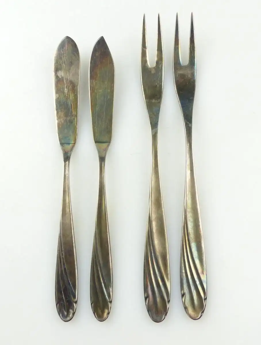 Die Besteckteile sind im sehr schönen, gebrauchten Zustand mit Gebrauchsspuren, kleinen Kratzern und Verschmutzungen, siehe Fotos.