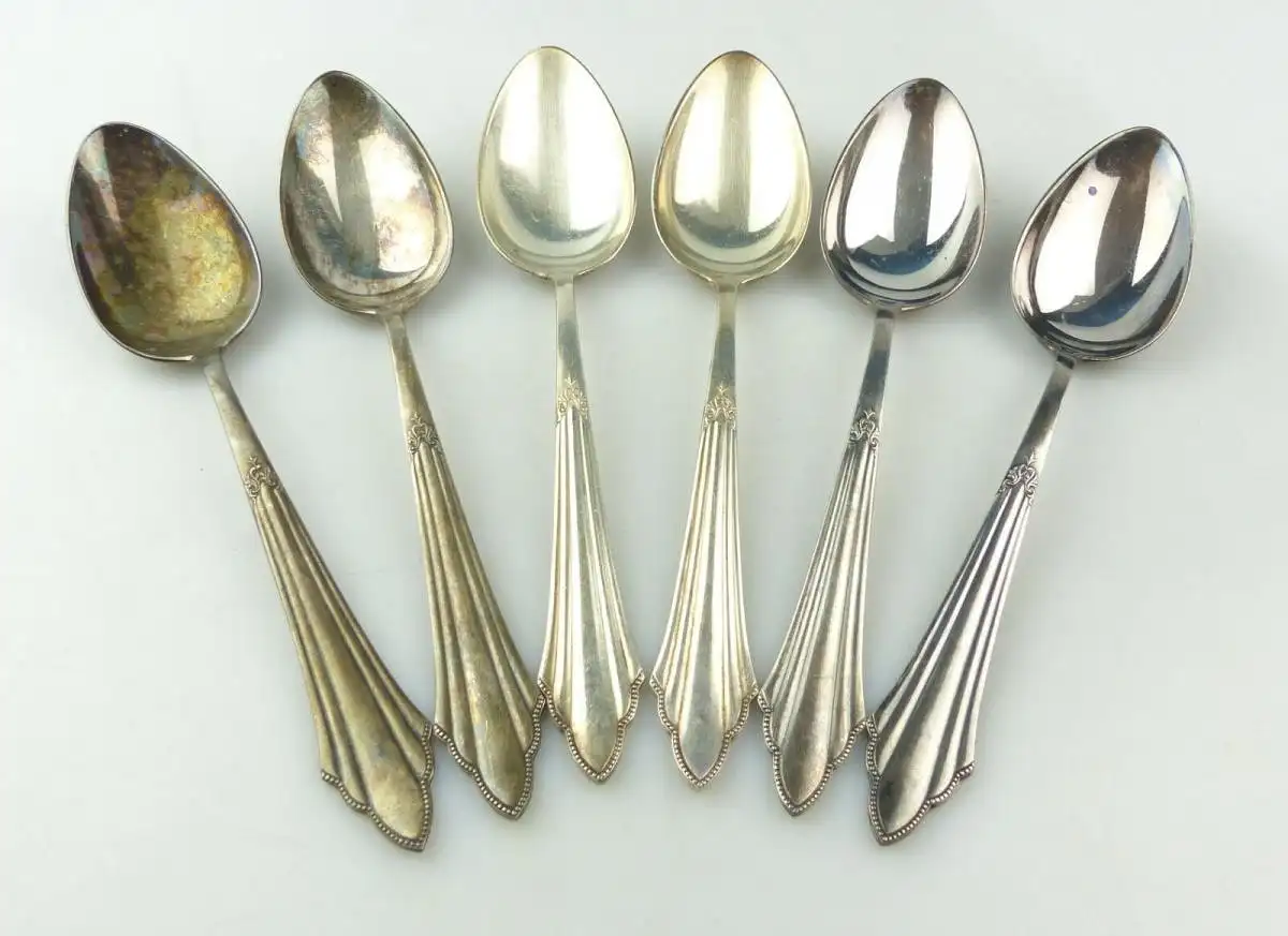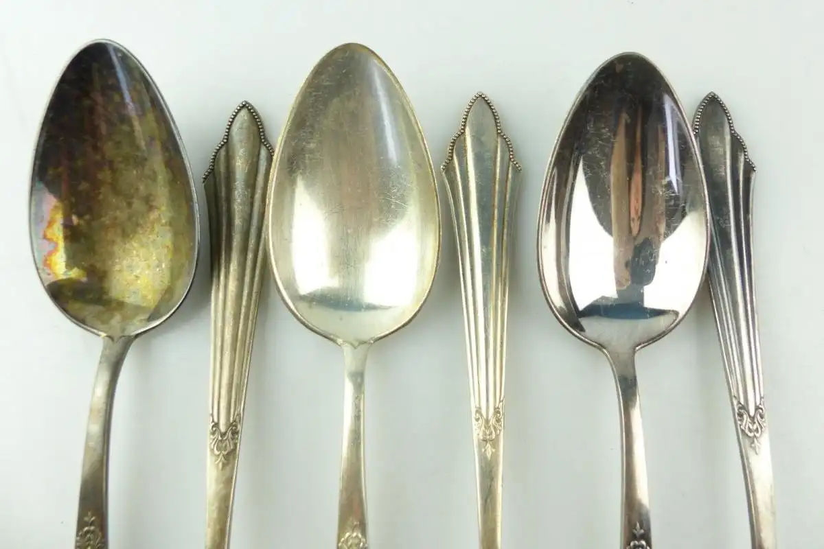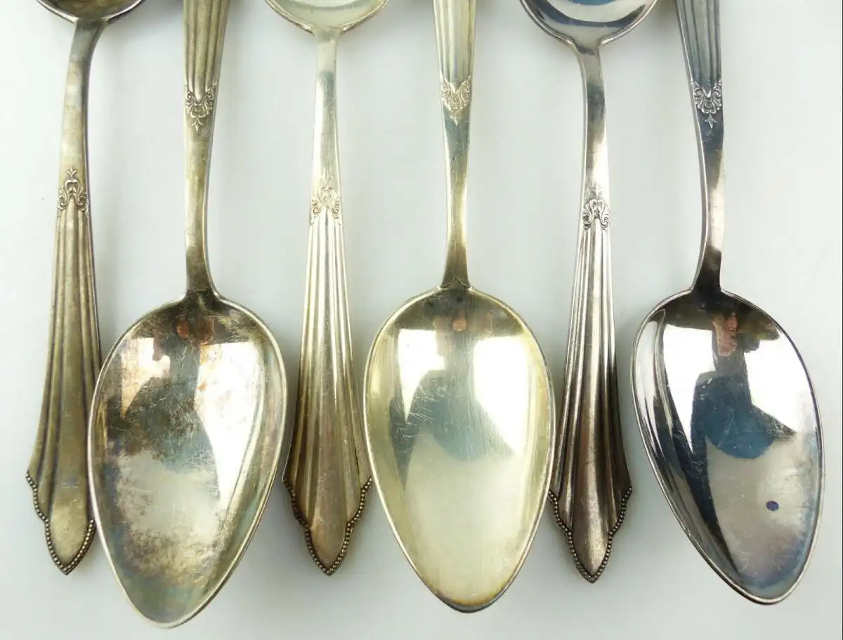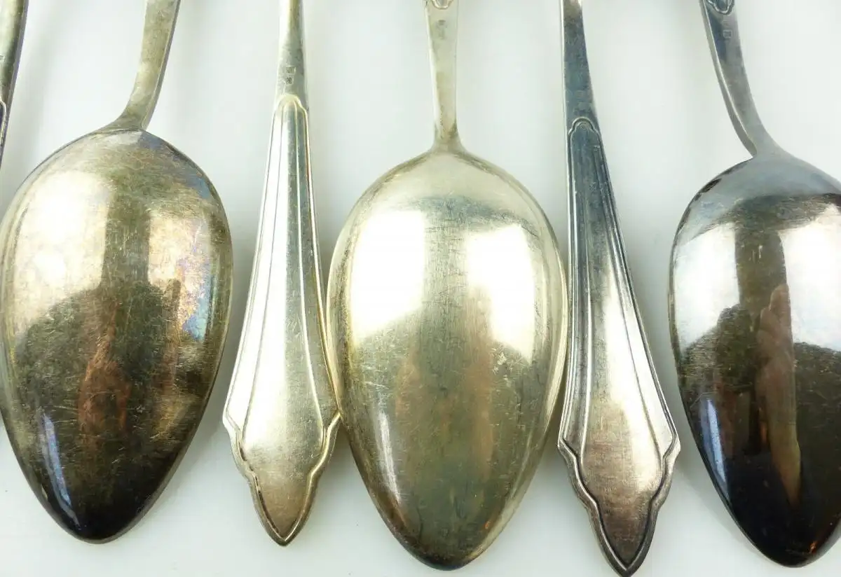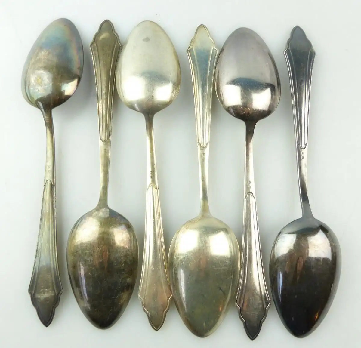 Herzlich Willkommen Gern können Sie auch in meine anderen Auktionen reinschauen. Viel Spaß dabei 6 versilberte Esslöffel von WMF mit Fächermuster Größe der Esslöffel ca.: 20,9 x 4,4 cm Feingehalt Silber: 90 in Auflage Gewicht zusammen ca.: 424 g Stempelung: WMF 90 Das Besteck ist im schönen gebrauchten Zustand mit Gebrauchsspuren, kleinen Kratzern und Verschmutzungen, siehe Fotos. Das Besteck ist nicht geputzt oder geschönt worden. Bitte schauen Sie sich die Fotos zum Zustand des Artikels an, da diese Bestandteil der Beschreibung sind.