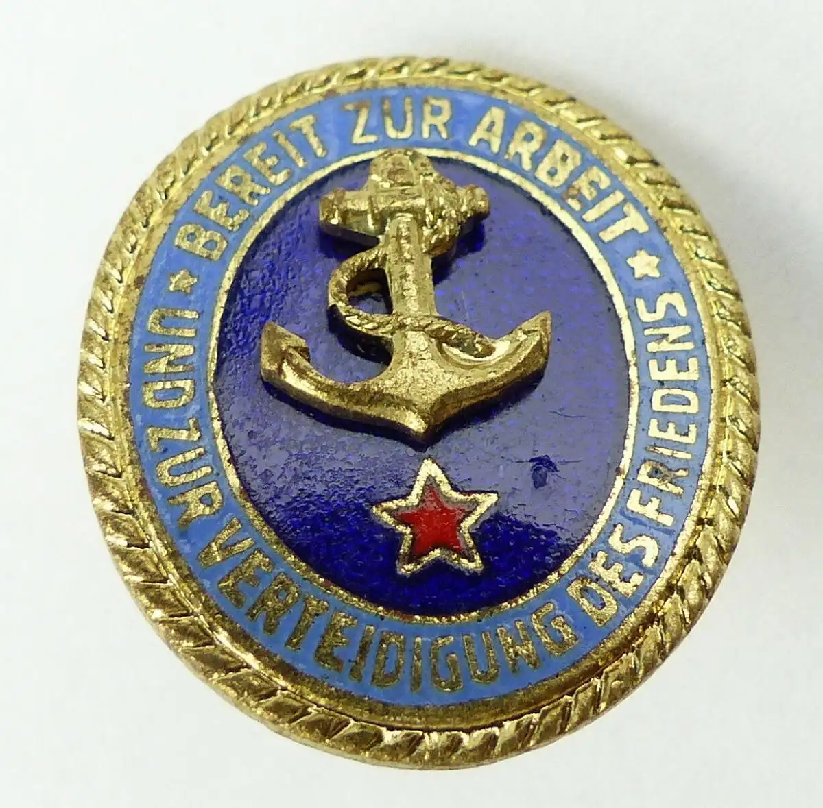 Herzlich Willkommen Gern können Sie auch in meine anderen Auktionen reinschauen. Viel Spaß dabei Original altes Abzeichen DDR Leistungsabzeichen der Seesportprüfung - seemännisch ab 1950 Zum Vergleich siehe DDR Spezialkatalog Band VII Seite 141 Nummer 743 Farbe: goldfarben \nGröße ca.: 22,5 x 20 mm 1 roter Stern; Stufe A Das Abzeichen ist im guten, gebrauchten Zustand mit Gebrauchsspuren und Verschmutzungen, siehe Fotos. Die Kanten sind etwas bestoßen. Das Abzeichen hat mittig einen kleinen Abplatzer, siehe Fotos. Der Artikel ist nicht gereinigt, geputzt oder geschönt worden. Bitte sehen Sie sich die Fotos zum Zustand des Artikels an, da diese Bestandteil der Beschreibung sind.