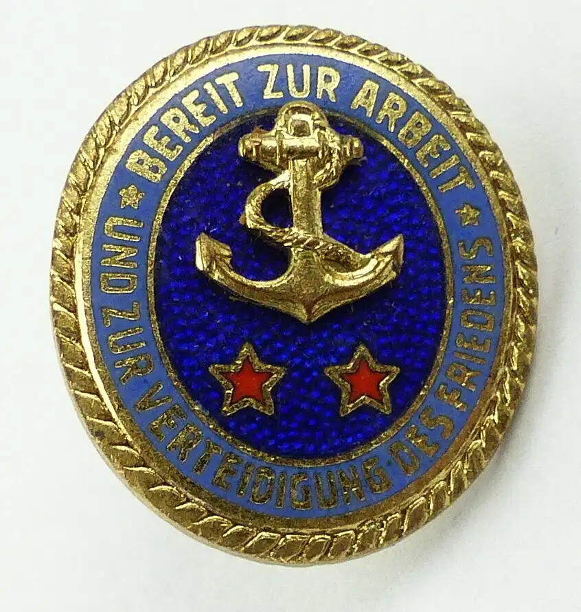 Herzlich Willkommen Gern können Sie auch in meine anderen Auktionen reinschauen. Viel Spaß dabei Original altes Abzeichen DDR Leistungsabzeichen der Seesportprüfung - seemännisch ab 1950 Zum Vergleich siehe DDR Spezialkatalog Band VII Seite 141 Nummer 742 Farbe: goldfarben \nGröße ca.: 22,5 x 20 mm 2 rote Sterne; Stufe B Das Abzeichen ist im guten, gebrauchten Zustand mit Gebrauchsspuren und Verschmutzungen, siehe Fotos. Die Kanten sind etwas bestoßen. Der Artikel ist nicht gereinigt, geputzt oder geschönt worden. Bitte sehen Sie sich die Fotos zum Zustand des Artikels an, da diese Bestandteil der Beschreibung sind.
