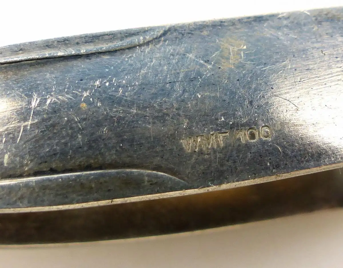 Herzlich Willkommen Gern können Sie auch in meine anderen Auktionen reinschauen. Viel Spaß dabei Versilberte WMF Zuckerzange Länge ca.: 10 cm Feingehalt Silber (Ag): 100 Silberauflage Gewicht zusammen ca.: 25 g Zur Stempelung: WMF 100 Das Besteck ist im guten gebrauchten Zustand mit leichten Gebrauchsspuren, kleinen Kratzern und Verschmutzungen, siehe Fotos. Das Besteck ist nicht geputzt oder geschönt worden. Bitte schauen Sie sich die Fotos zum Zustand des Artikels an, da diese Bestandteil der Beschreibung sind.