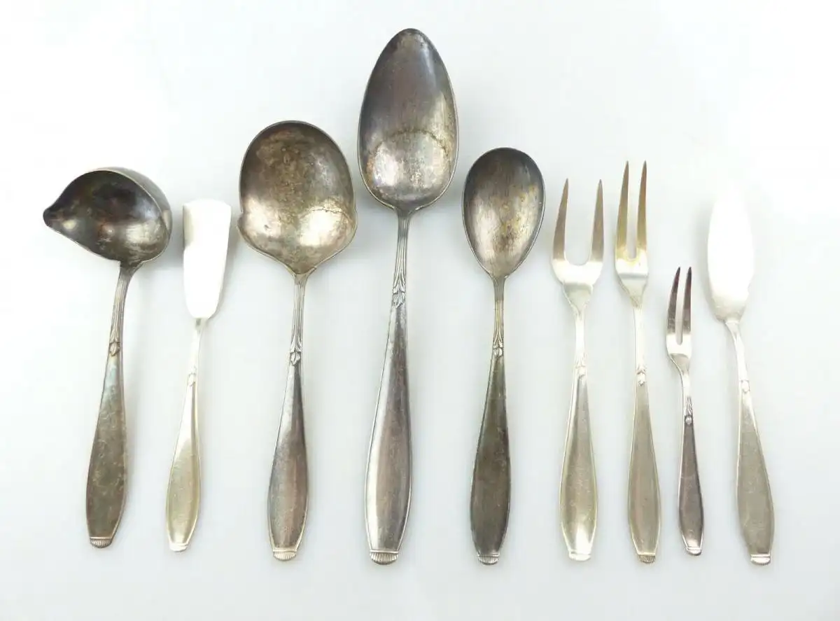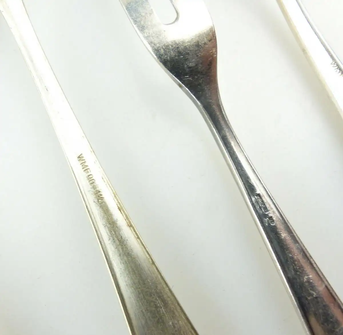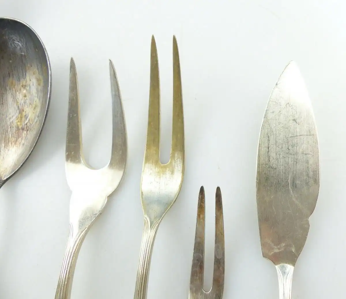 Herzlich Willkommen Gern können Sie auch in meine anderen Auktionen reinschauen. Viel Spaß dabei 9 verschiedene versilberte Vorleger von WMF Gewicht zusammen ca.: 450 g Feingehalt Silber: 90 in Auflage Zur Stempelung: WMF 90 Das Besteck ist im gebrauchten Zustand mit Gebrauchsspuren, kleinen Kratzern und Verschmutzungen, siehe Fotos. Das Besteck ist nicht geputzt oder geschönt worden. Bitte schauen Sie sich die Fotos zum Zustand des Artikels an, da diese Bestandteil der Beschreibung sind.