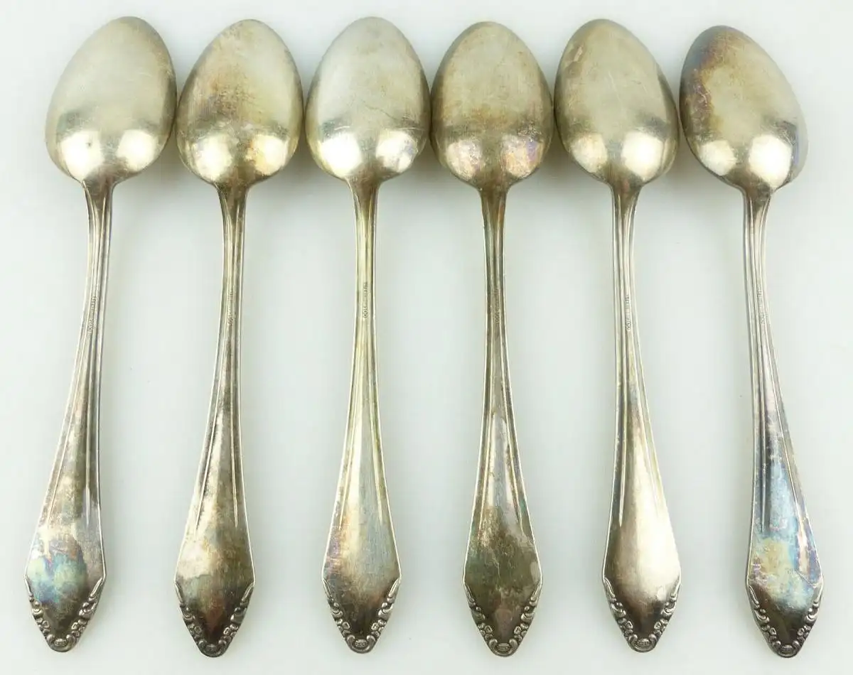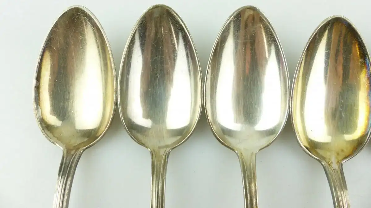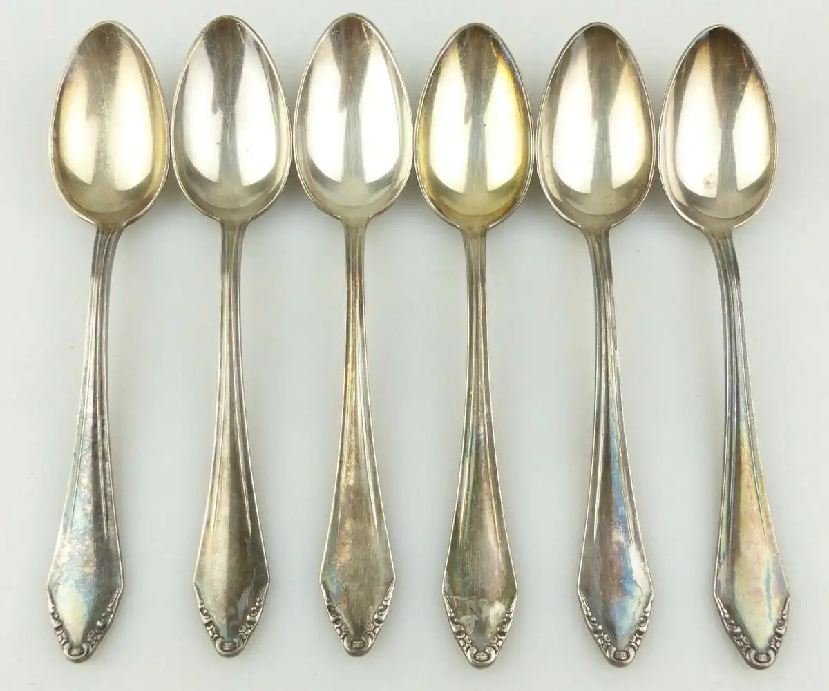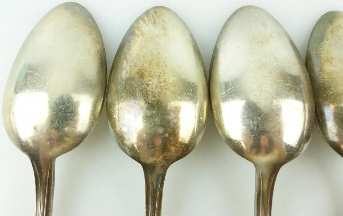 Gern können Sie auch in meine anderen Auktionen reinschauen. Viel Spaß dabei 6 versilberte Kaffeelöffel Größe der Kaffeelöffel ca.: 14,6 x 2,8 cm Gewicht zusammen ca.: 178 g Feingehalt Silber: 100 in Auflage Stempelung: WMF 100 Die Besteckteile sind im guten gebrauchten Zustand mit leichten Gebrauchsspuren und Verschmutzungen, siehe Fotos. Der Artikel ist nicht geputzt, gereinigt oder geschönt worden. Bitte schauen Sie sich die Fotos zum Zustand des Artikels an, da diese Bestandteil der Beschreibung sind.