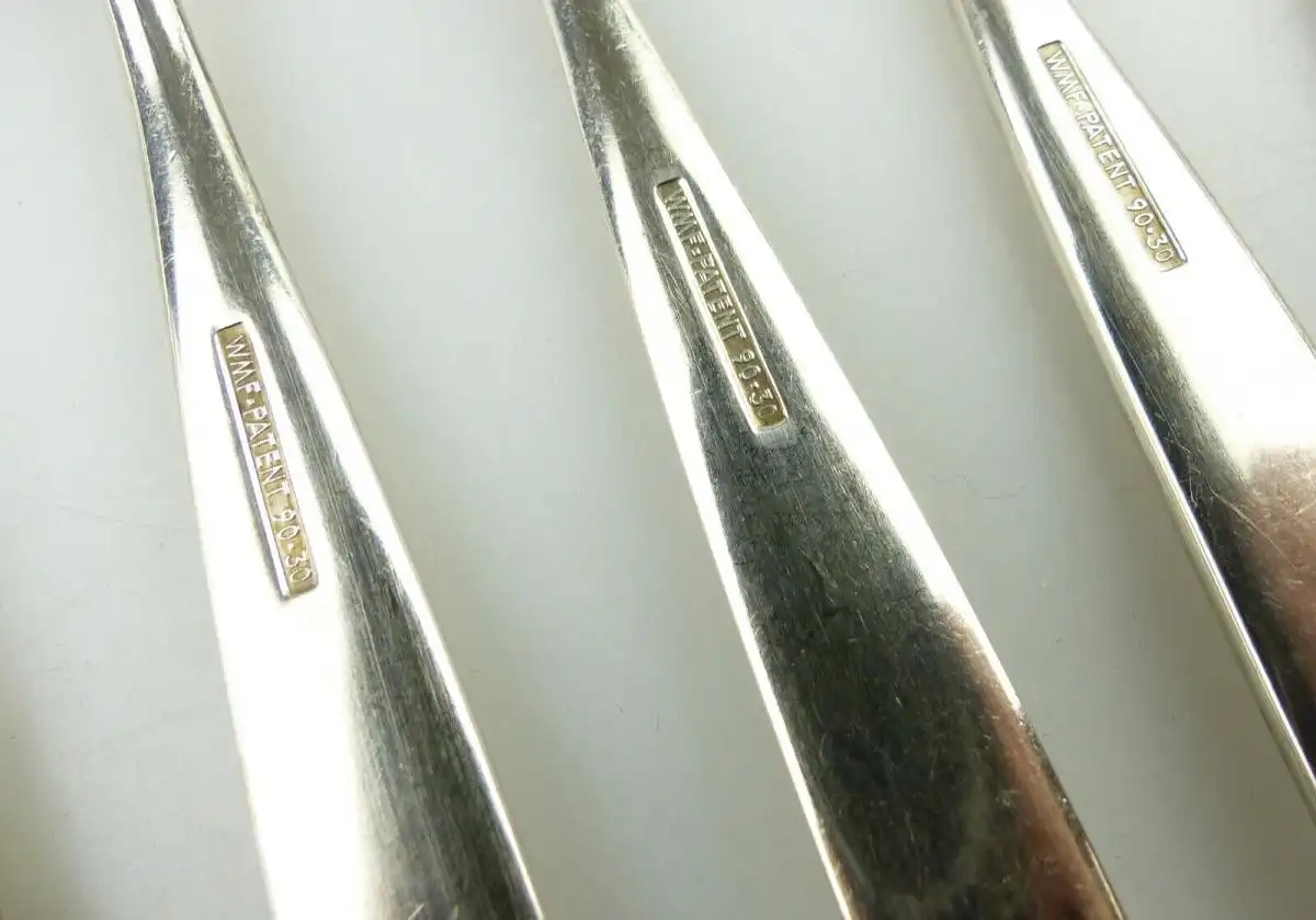 Größe jeweils ca.: 18,5 x 2,3 cmGewicht zusammen ca.: 255 gFeingehalt Silber: 90 in AuflageStempel: WMF 90