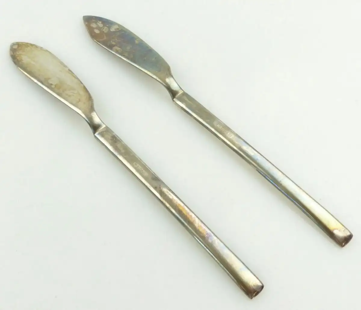 Herzlich Willkommen - Gern können Sie auch in meine anderen Auktionen reinschauen. Viel Spaß dabei - 2 versilberte Vorleger von WMF 90 in Auflage Größe jeweils ca.: 18,2 x 2 cm Gewicht zusammen ca.: 75 g Stempelung: WMF 90 Die Vorleger sind im guten gebrauchten Zustand mit leichten Gebrauchsspuren, kleinen Kratzern und Verschmutzungen, siehe Fotos. Der Artikel ist nicht gereinigt, geputzt oder geschönt worden. Bitte schauen Sie sich die Fotos zum Zustand des Artikels an, da diese Bestandteil der Beschreibung sind.