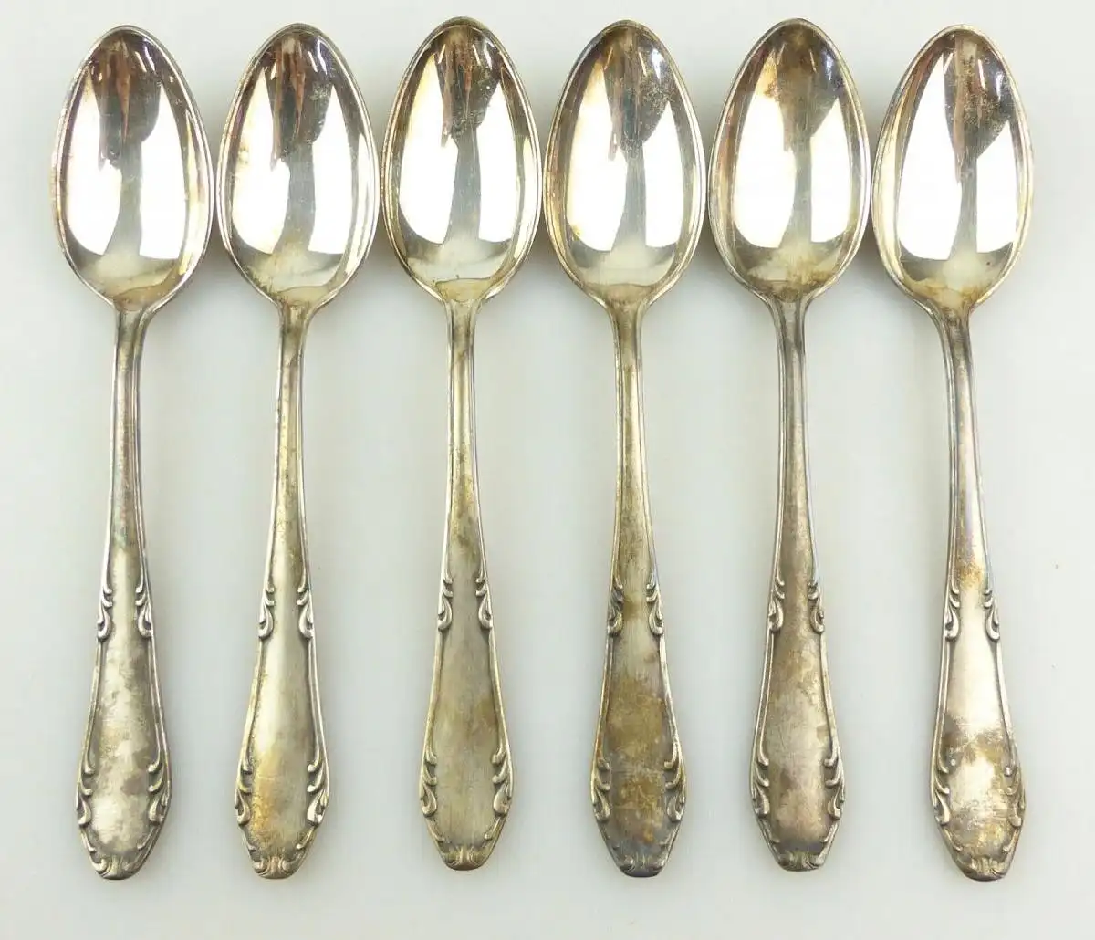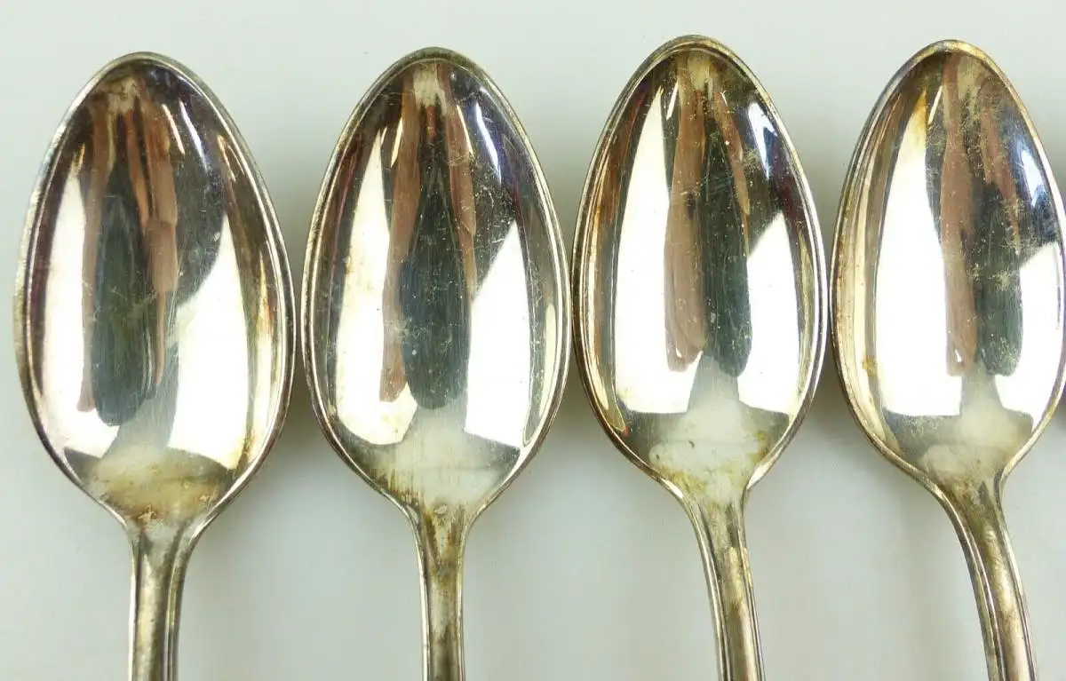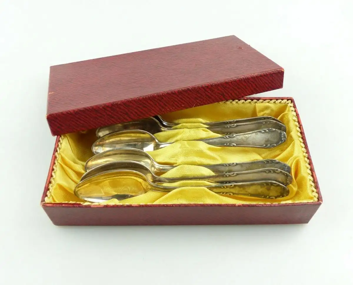 Herzlich Willkommen - Gern können Sie auch in meine anderen Auktionen reinschauen. Viel Spaß dabei - 6 versilberte Kaffeelöffel in OVP Größe jeweils ca.: 14,3 x 2,8 cm Gewicht zusammen ca.: 148 g Feingehalt Silber: 60 in Auflage Stempelung: Argonid 90 Die Löffel sind im guten, gebrauchten Zustand mit Gebrauchsspuren und Verschmutzungen, siehe Fotos. Der Artikel ist nicht gereinigt, geputzt oder geschönt worden. Bitte schauen Sie sich die Fotos zum Zustand des Artikels an, da diese Bestandteil der Beschreibung sind.