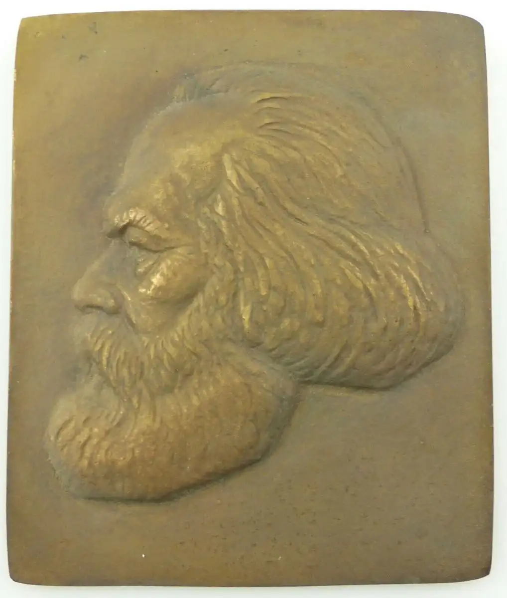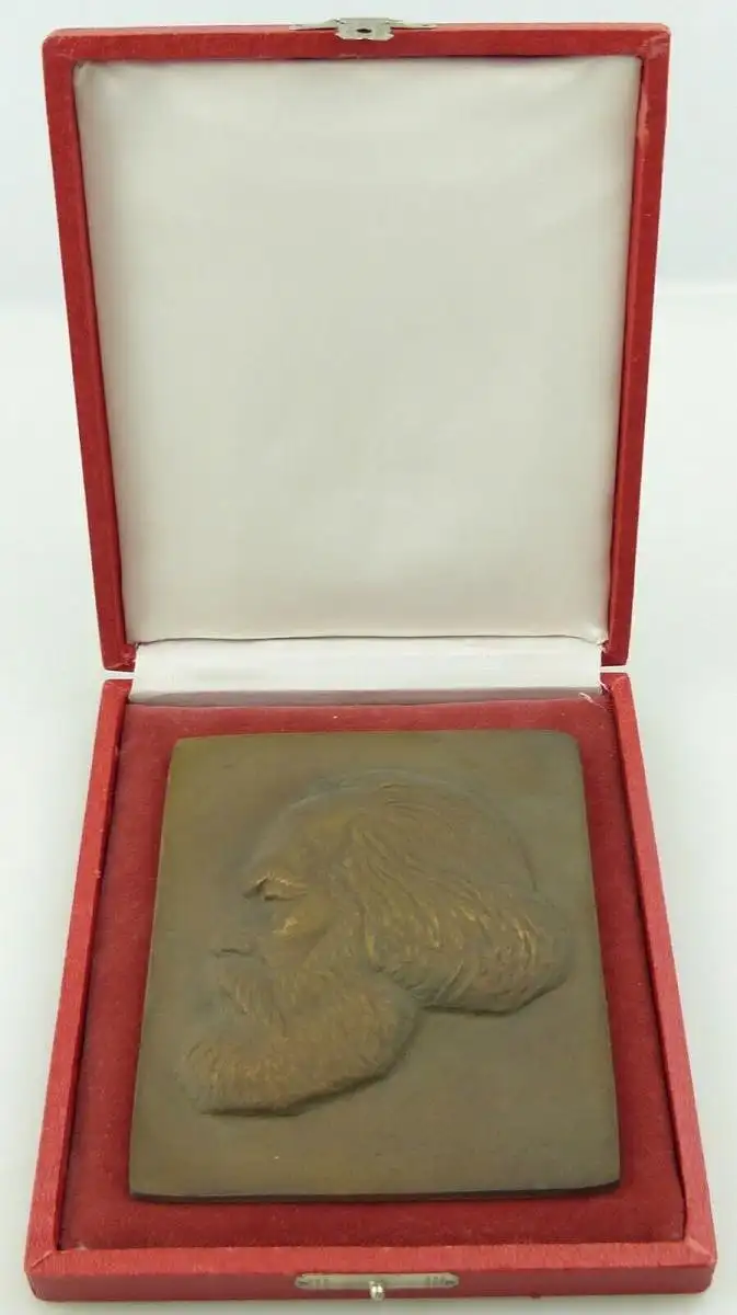 Herzlich Willkommen - Gern können Sie auch in meine anderen Auktionen reinschauen. Viel Spaß dabei - Original altes Bronze Relief Karl Marx in OVP Größe des Reliefs ca.: 12,3 x 10,3 cm \nGewicht ca.: 310 g Größe des Etuis ca.: 16,3 x 13,9 x 2,5 cm Das Relief ist im guten, gebrauchten Zustand mit Gebrauchspuren und Verschmutzungen, siehe Fotos. Das Etui hat Schmutzflecken und ist an den Kanten leicht bestoßen. Der Artikel ist nicht gereinigt, geputzt oder geschönt worden. Bitte schauen Sie sich die Fotos zum Zustand des Artikels an, da diese Bestandteil der Beschreibung sind.