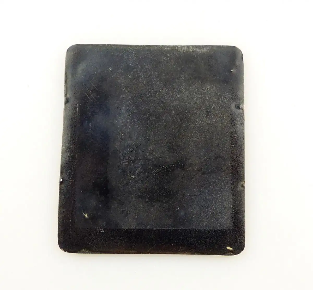 Das Etui ist an den Kanten bestoßen und hat Farbverluste sowie Schmutzflecken.