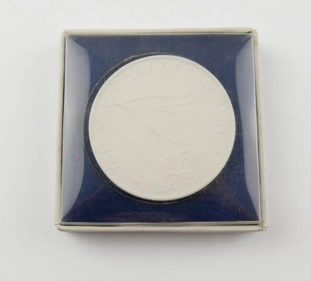 Herzlich Willkommen Gern können Sie auch in meine anderen Auktionen reinschauen. Viel Spaß dabei Original alte Meissen Medaille 25 Jahre VEB Yachtwerft Berlin DDR Durchmesser ca.: 63 mm Farbe: Weiß Größe der Schachtel ca.: 9 x 9 cm Zustand: Die Medaille ist im guten gebrauchten Zustand mit leichten Gebrauchsspuren und Verschmutzungen, siehe Fotos. Die Schachtel hat Gebrauchsspuren, der Deckel ist seitlich eingerissen. Der Artikel wurde nicht geputzt, gereinigt oder geschönt. Bitte schauen Sie sich die Fotos zum Zustand des Artikels an, da diese Bestandteil der Beschreibung sind.