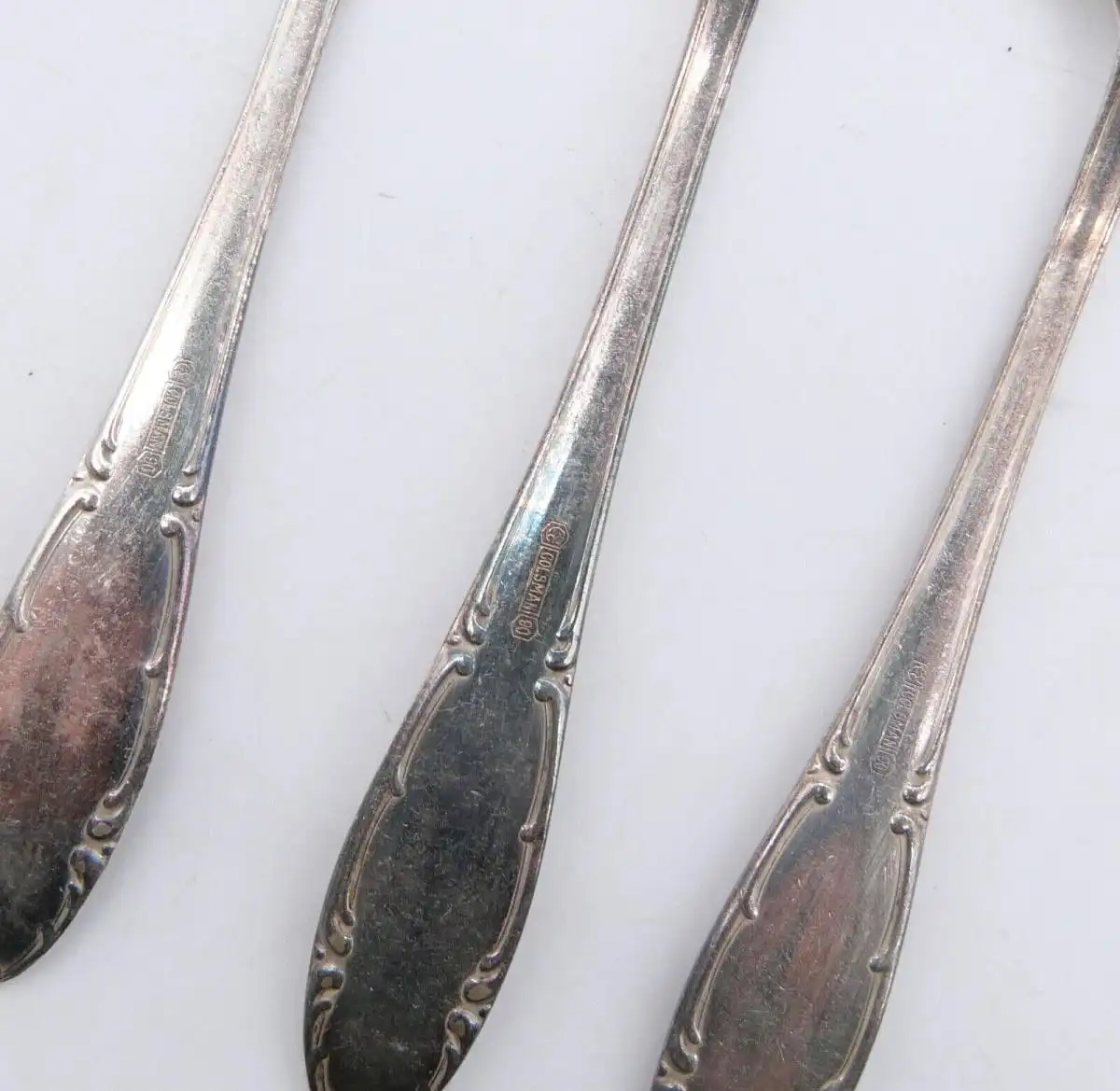 Die Löffel sind im guten gebrauchten Zustand mit leichten Gebrauchsspuren, kleinen Kratzern und Verschmutzungen, siehe Fotos. Der Artikel ist nicht gereinigt, geputzt oder geschönt worden. Bitte schauen Sie sich die Fotos zum Zustand des Artikels an, da diese Bestandteil der Beschreibung sind.